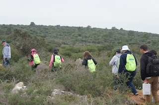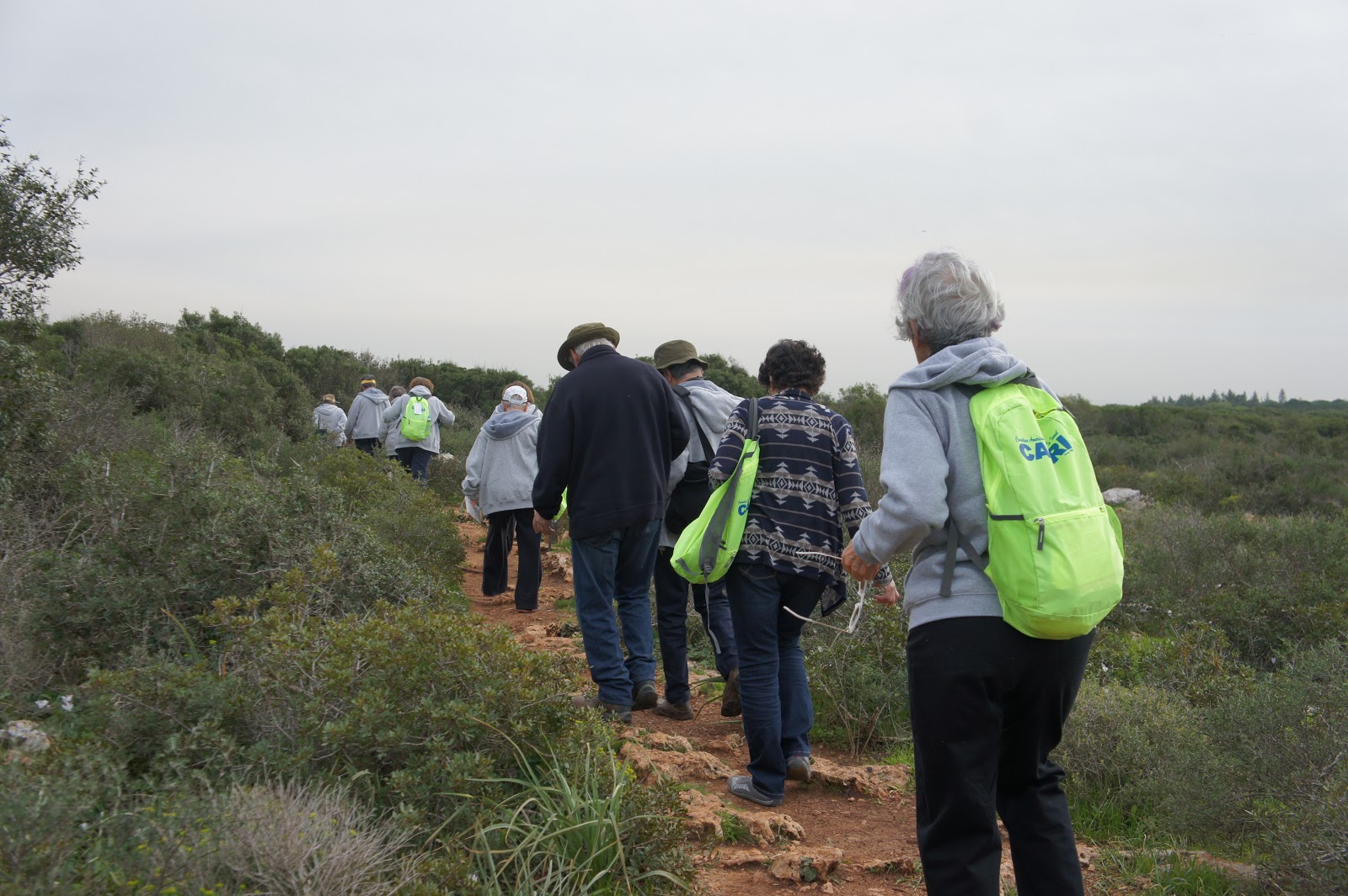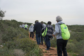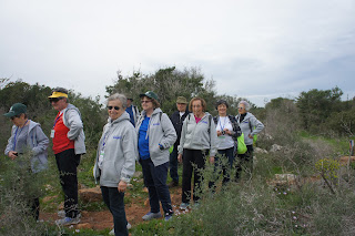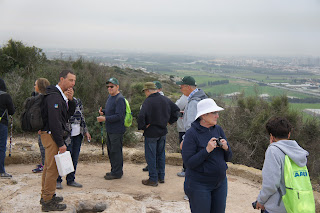 Last Thursday we said “l’hitroiot” (goodbye) to the three week (Grape) participants and “shalom” (hello) to the four week (Barley). Sunday and Monday mornings, we were off to our community service work and warmly welcomed by all – students, patients and lots of weeds at the Botanical Gardens. Monday afternoon, Zaharia, out terrific bus driver, picked us up after lunch at the hotel and drove north to a nature park just’ outside Zikron Ya’cov called Mansur el Abeq. With all the rain and days of sun, the wild flowers were in bloom, and so were the mosquitos! The trail is part the Israel National Trail (INT) which is 680 mile (1,100 km) trail that crosses the entire country from North to South. We only did this small section, but it took us through the natural habitat, colorful wild flowers, ruins from a farm house from the Byzantine Period, which included foundation structures, wine and oil presses and a magnificent view of the sea! Ah…to be outdoors in February!