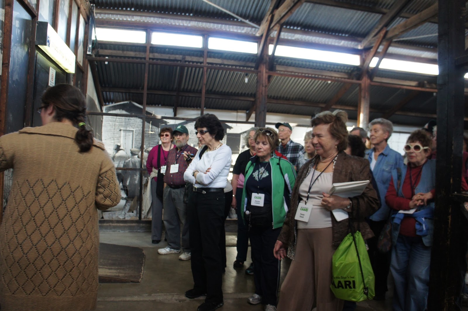 After lunch, we went to Atlit, , the English detention center where so many Jews were held when they tried to get here illegally under the British rule (when Israel, succombing to Arab pressure was making it almost impossible for Jewish people to get here).  They have done a great job in this museum in the past 5 years…..I had not been here for at least 20 years. They now have a boat, about the size of many that were transporting illegal immigrants with a video presentation about the hardships of the trip….shown in several different places, and looking out the portholes made you feel as if you were at sea…..so one look was all I took, and then I felt as if the boat were rocking.  Of course, before the boat, we saw the quansut hut type dormitories in which the detainees lived…..many of them coming there after the war was over in 1945…….not until Israel was a state were all of the people there given their freedom……..just another awesome experience for us lucky folks on this CAARI trip.