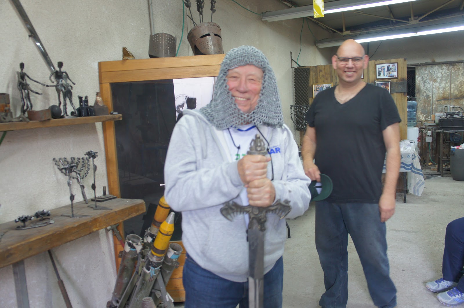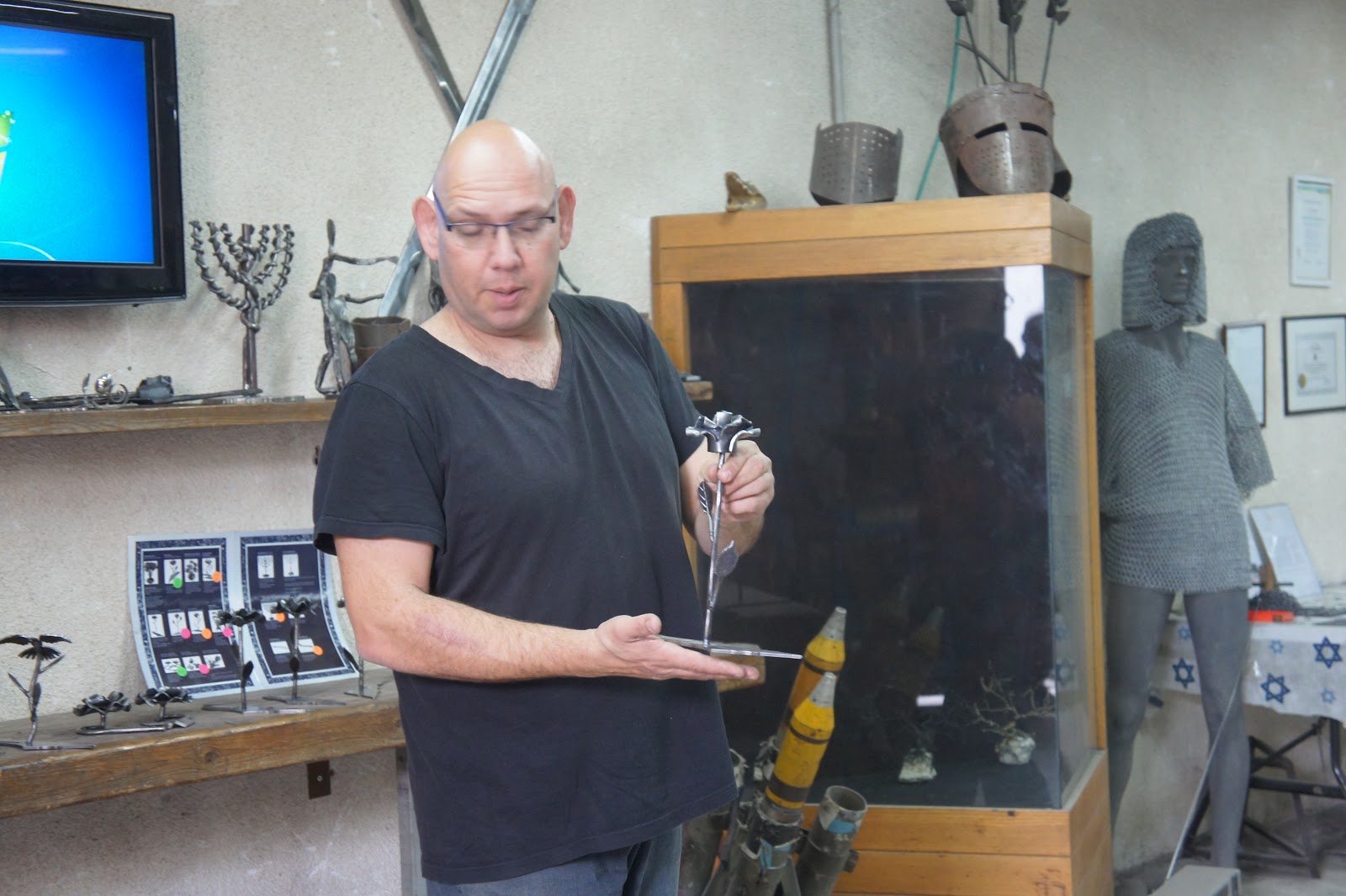 We then visited Haluziot communities, all within range of missiles from Gaza. The families living here are mainly evacuees from Gaza, although many new families are moving to the area. As a matter of fact, one resident make ornaments from the medal from rocket parts.