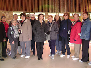 After the orientation and briefing about the town of Mitzpeh Ramon in the Municipality building meeting room, we went to visit one of the two high schools. This school is called the Shalom School where the peace strategy of Yitzhak Rabin is commemorated. It is an unusual school emphasizing the Arts, where both fine arts and performing arts and the exact sciences are both nurtured. Ronit, the principal, met us and showed us around. She is in the middle of the picture with the black shoes on. Here we are standing at the entrance of the school. We saw the science labs and classrooms and the performing arts rooms where there is a large auditorium for performing arts and a large studio for painting and sculpture etc.