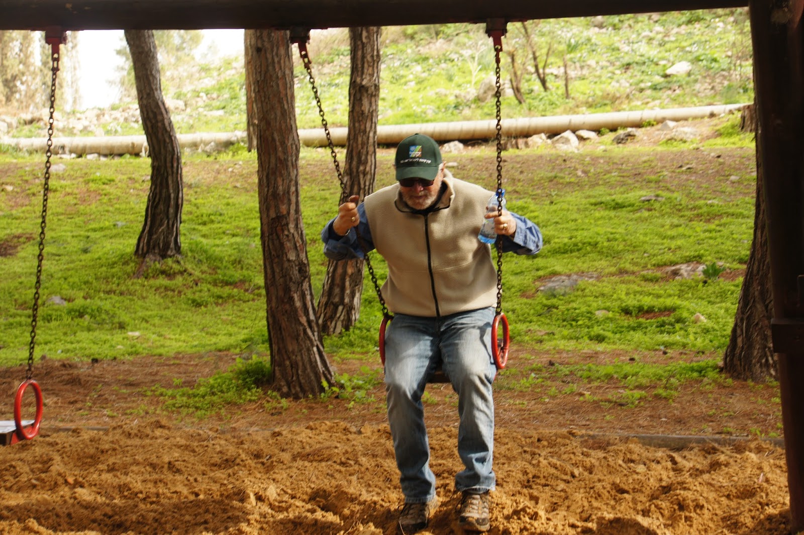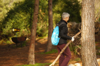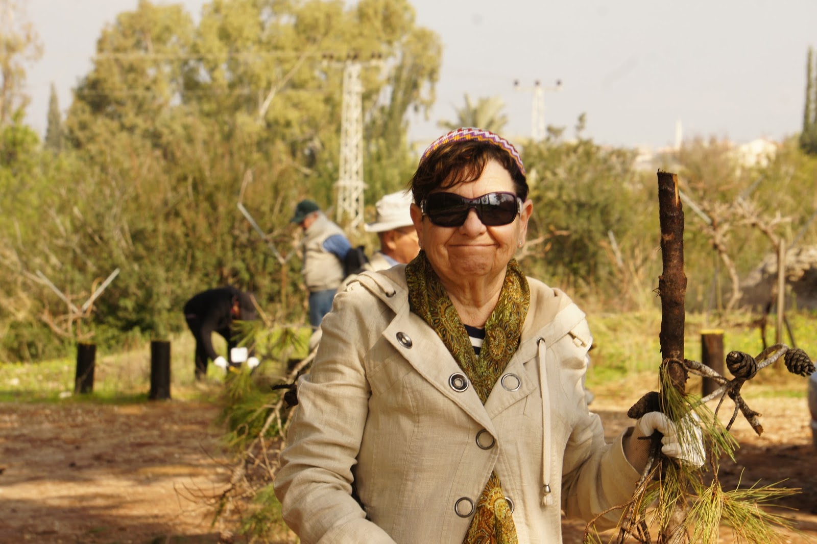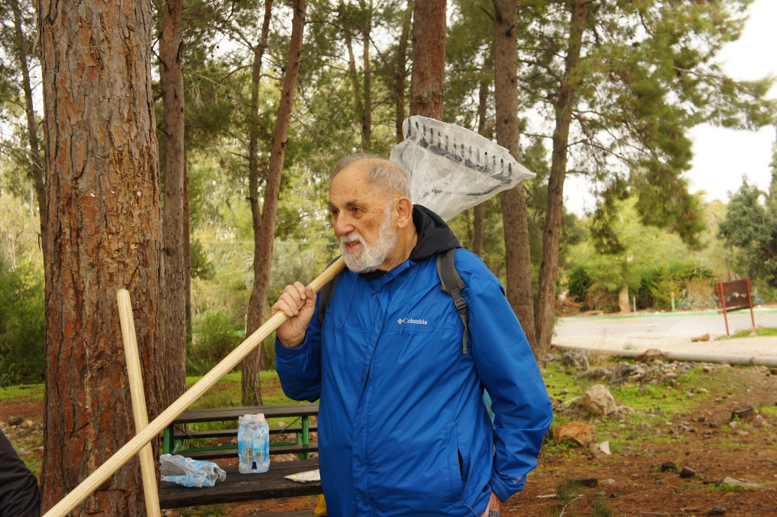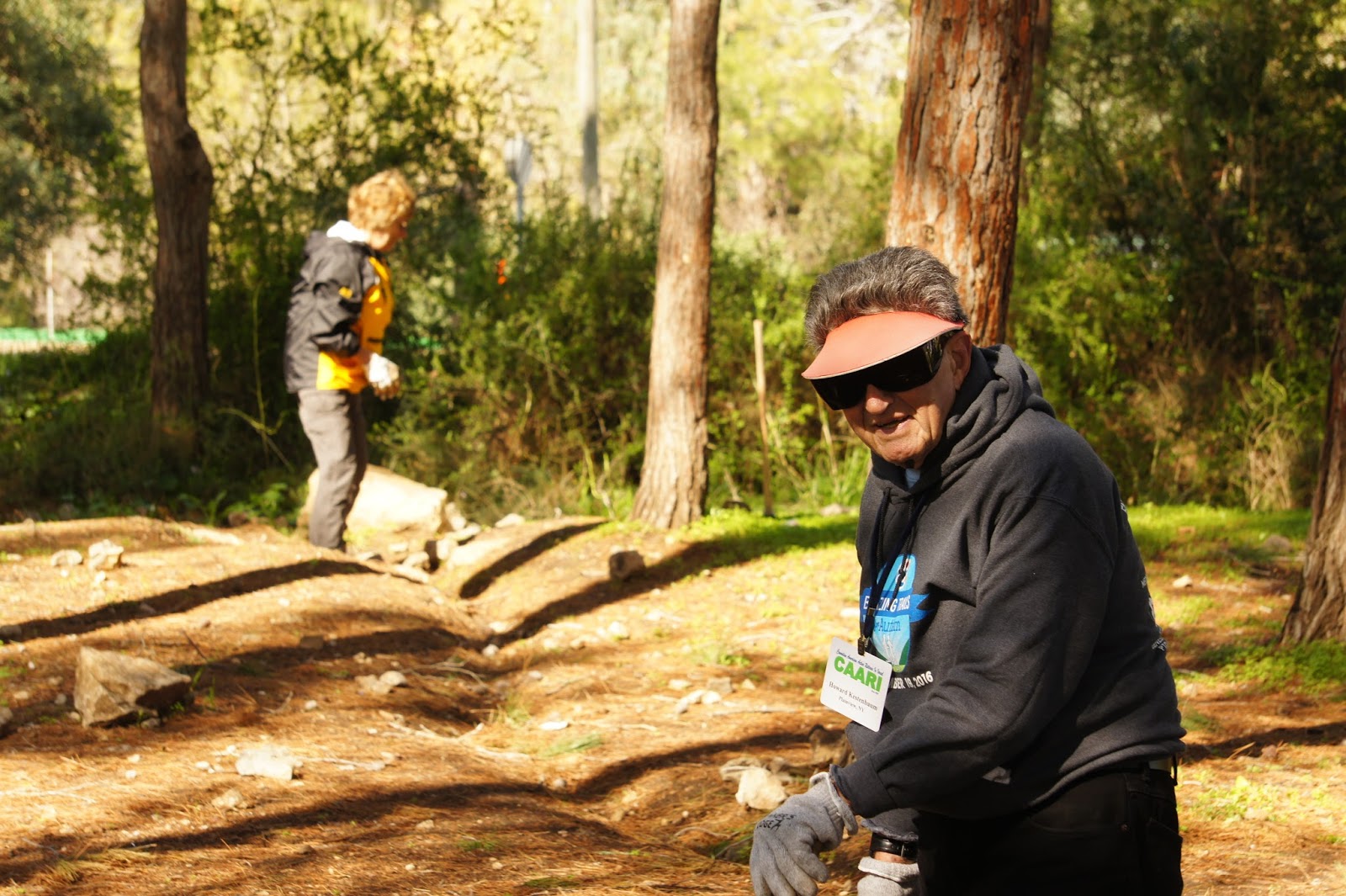 We were greeted by Miri and Yashkeeh, Hezi’s sister and Father. Yashkeh is a survivor from the Lutzk Ghetto in the Ukraine and was a platoon commander in the Palmach. With Yashkeeh’s marching orders, we were divided into three groups. With pick axes, rakes, hoes, paintbrushes, we began our assignments as instructed, to restore the vineyard and antiquities that were damaged by the fire. CAARI cleaned some of the marked trails and stone paths, dug drainage ditches, painted signs and picnic tables and by noon CAARI was ready for lunch. Yashkeh took us to the overlook named for his son and Nahum our guide explained the defensive barrier built in response to the Al Aksa uprising in 2000, the green line and the Palestinian City of Kalkilyia and the Community of Alfei Menashe.