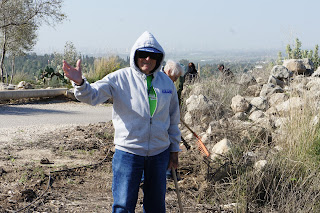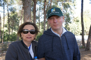 Off we go to meet very special people in Horhsim Forest, about a half hour outside of Tel Aviv. This JNF Forest was established in the 40’s. We met 91 year old “Yashke” Staretch and his daughter Miri. They have dedicated this recreation area, with picnic tables, walking paths through Byzantine ruins and lovely vistas, in memory of Hezi (son and brother) who was killed by a suicide bomber on a bicycle on 11.11.94 at Netzerim Junction in Gaza just south of the City of Gaza.