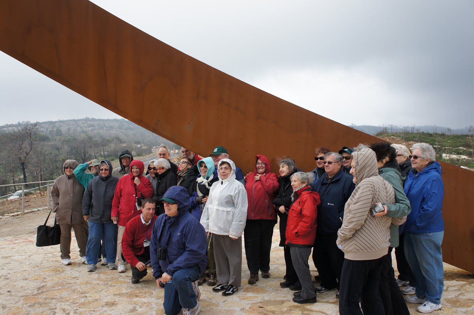 Today we met wjth a JNF forester, Alon, in the Carmel Forest, the site of the Carmel Forest Fire in the fall of 2011. Much needs to be done to clear thousands of acres of burned brush and trees and CAARI was there to help – we schlepped, carried and piled the brush! We also discovered that we weren’t the only volunteers as we met 5 men from the Czech Republic who came for 2 weeks to work in the forest. The other assistants were a herd of goats who come to the forest daily to eat the brush. CAARI worked for the morning and then visited the Memorial to honor the people who were killed during the fire. We also visited the Fire Station and met the fireman who were the first responders to the tragic fire. A presentation by CAARI participant, Mel Wasserman (survivor of 9/11) was made to the Fire Chief. It was extremely moving. We, who attended CAARI last year, remember stopping at this spot last year to recall the tradegy. Another amazing day with CAARI. Shalom, Barbara and Elliott Warmest Regards,