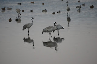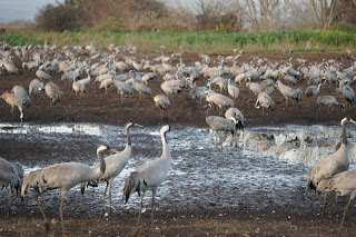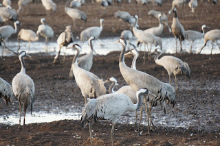 From there, we boarded the camouflaged wagon drawn by a tractor, which allows for us to get into the crane population who were coming ‘home’ for the night. It was quite the experience! Enjoy our view of the cranes.