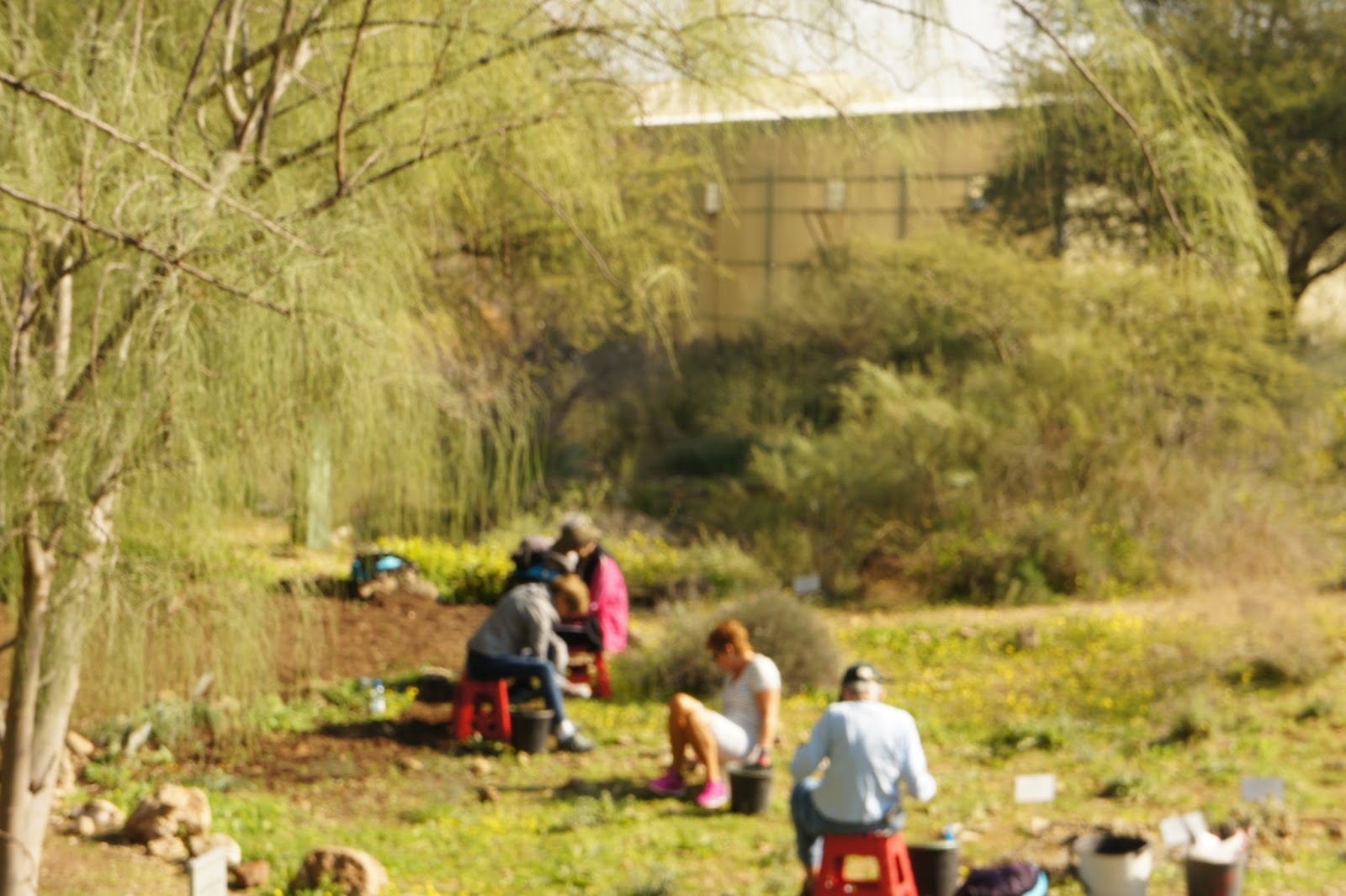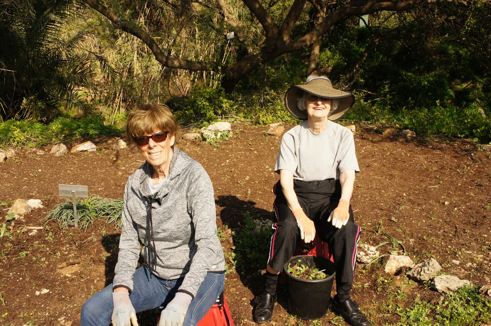 | Mother Connie and daughter Judy weeding at Botanical gardens Tel Aviv University |