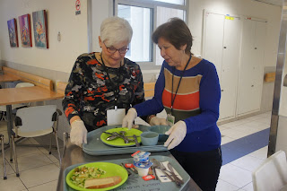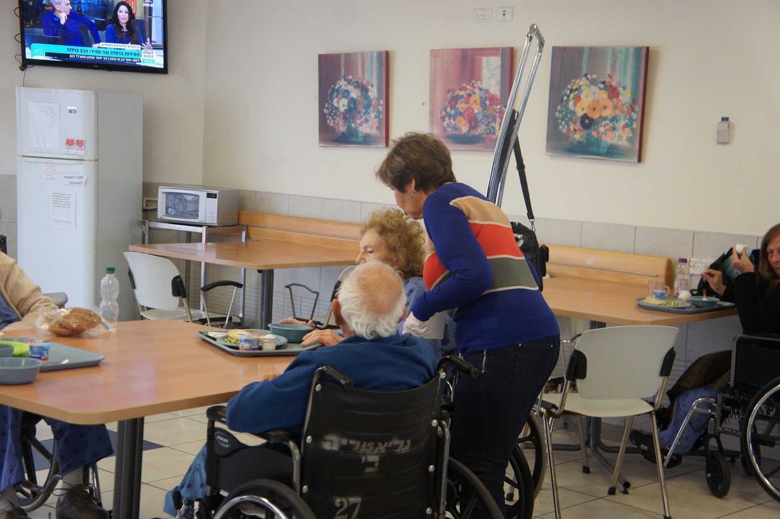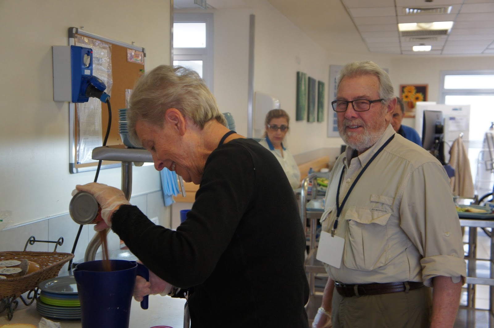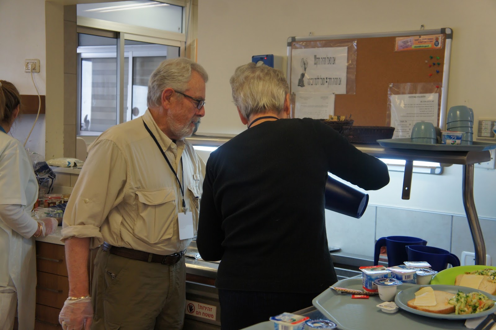 The first group to leave the hotel in the morning for their community service assignment is Sheila, Paula, Arlene and Mark! They work at the central medical center in Tel Aviv. They need to be at the Rehab Center early to prepare the trays and serve breakfast to the patients. CAARI is greeted with smiles and a good morning in various languages – Hebrew, Russian, Yiddish and even English. The breakfast is not like the hotels food, but the patients are happy to be served and cared for by these 4 devoted participants. Yael, the head nurse, is so grateful for CAARI’s assistance every year and always looks forward to the CAARI’s participation!