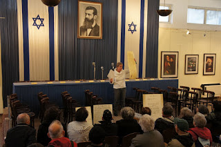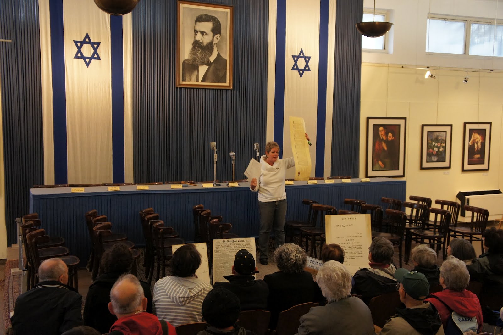 From Mel and Sandy’s blog: “…we returned to the hotel for lunch, then went on a tour- visited Independence Hall, the place where the State of Israel was declared a nation by David Ben Gurion on May 14, 1948. (It took place in Tel Aviv and not Jerusalem because Jerusalem was under siege!) A select 350 people had been invited to gather at 3:30 for a thirty two minute ceremony at 4 PM for this declaration on that date. Our guide told us, that of course one person told another, and many, many, more people showed up! Independence Hall and the sounds of that taped ceremony were very moving. The young woman who spoke to us about Independence Hall and its history, was a terrific spokesperson for Israel; her parents are Holocaust survivors, and she herself has three sons, two of whom are currently in the army defending the State. She was born in Israel, a sabra, and served as an officer in the air force. When this tour was over, a group of us thought we’d get some air, and since the afternoon was mild, we took a walk along Dizengoff Blvd, winding up at a most fantastic 3 level health food store with bulk nuts and fruits and grains, tahini and hummus from many nations, and a zillion other organic varieties of items like this that we buy at home. Ah, bliss!