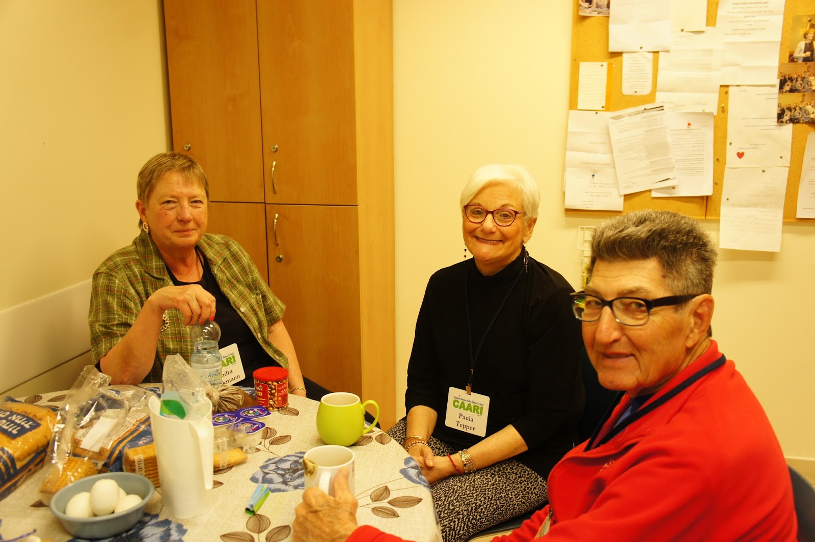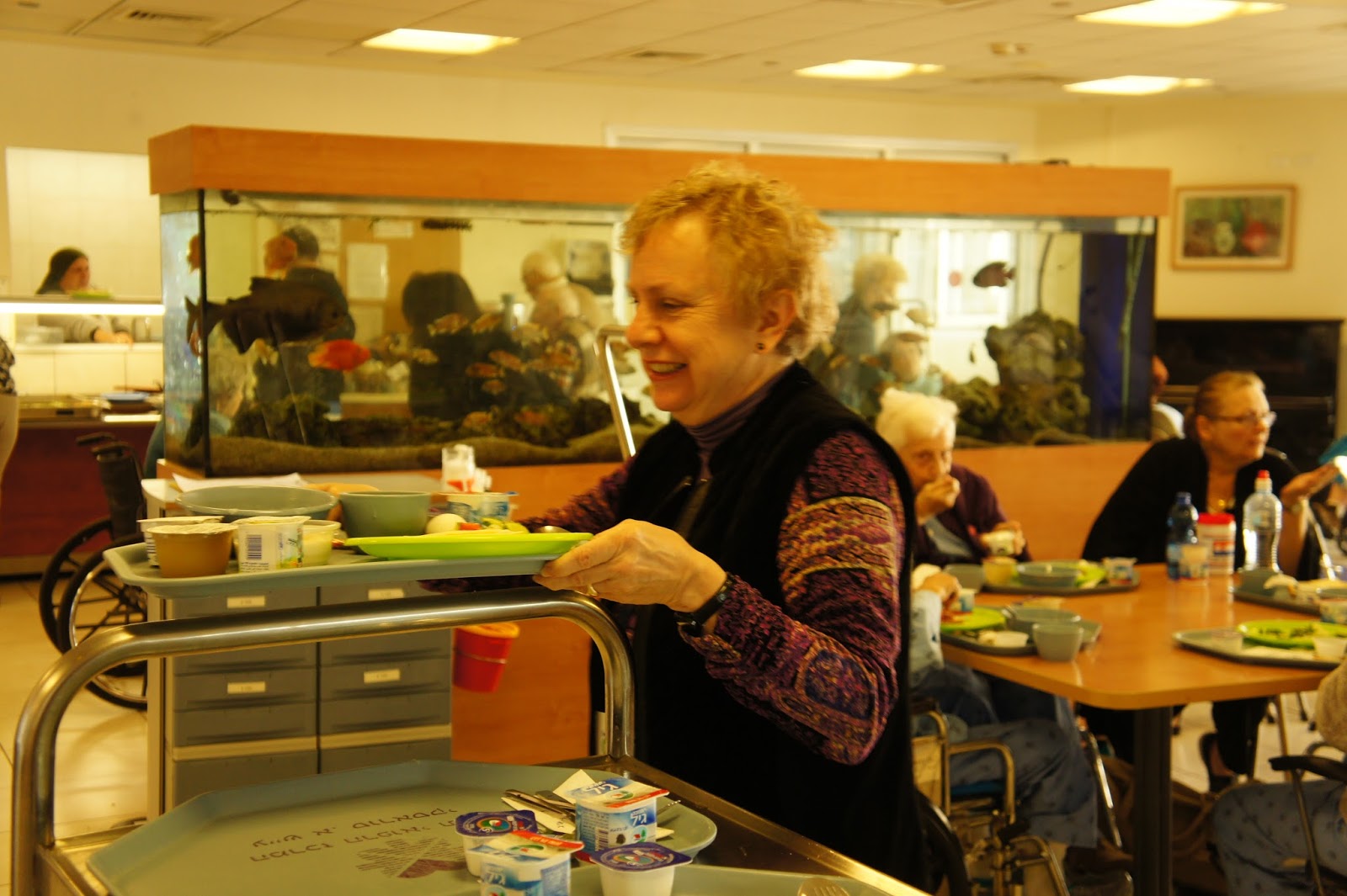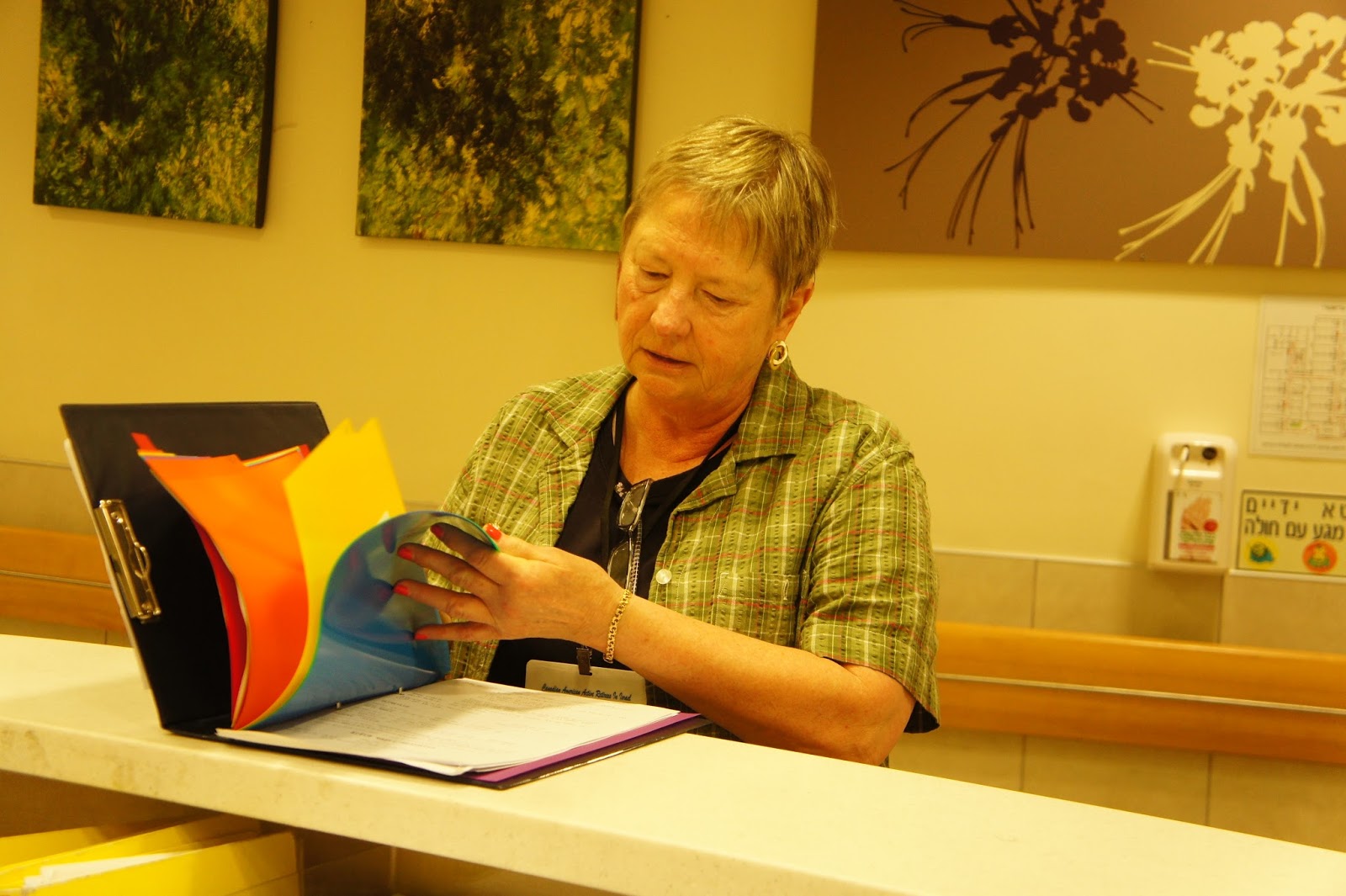 The volunteers at the Rehab Center serves breakfasts and helps with paper work. Yael,the nurse supervisor so appreciates the volunteers. Sandy has joined Paula, Ann, and Howard. Job well done CAARI team!