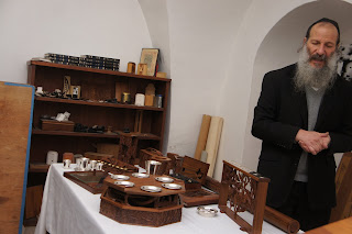 After another walk, with more steps, we arrived at the shops of Noah Greenberg, an artist in wood, who showed us his 25-year project, a lectern, holding a vast collection of most of the Jewish objects needed for all the holidays. I hope the pictures will show the fine carvings of these items.
