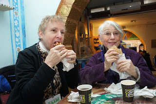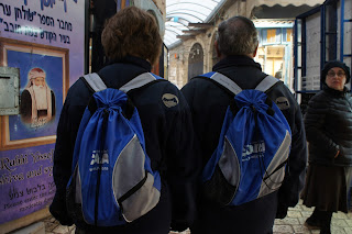 Howard’s Experience; We then drove to Safed , where we visited the original Sephardic Shul of Joseph Caro, who had written the Shulchan Aruch, that codified Jewish law. Then, after shopping for candles at the famous candle factory, it was time for lunch. Esther, and I tried to follow our guide Neil’s instructions to the street of restaurants. (Some stayed below and ate at a traditional Yemenite sandwich place) This involved climbing steps that never seemed to end. Finally reaching the top, we collapsed into the first Falafel restaurant and had some really food to hold us. Luckily we ran into our guide at a nearby coffee shop, and found we could take an elevator down.