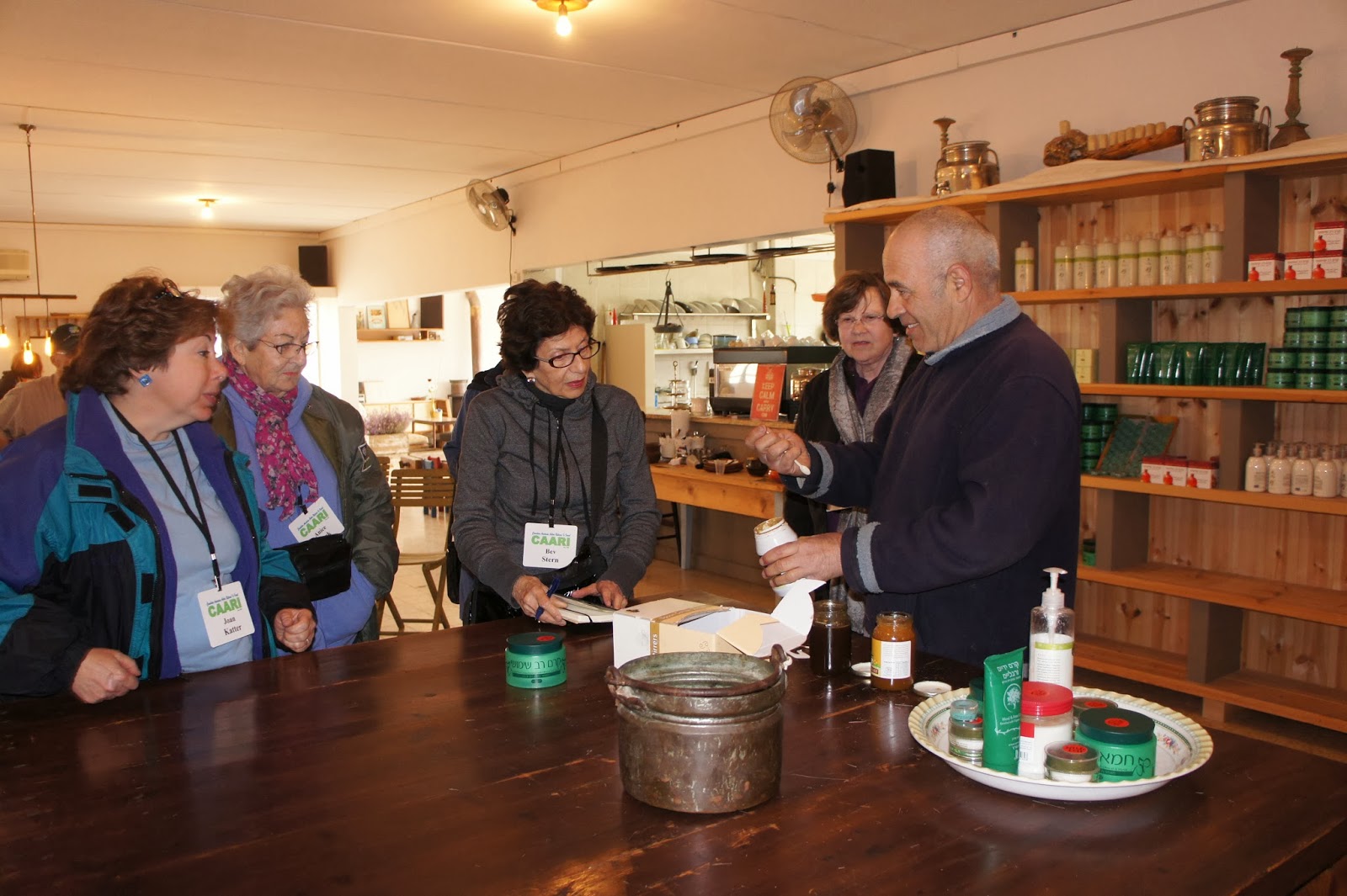 While many of the olive farms in the Galilee are owned by Arabs, this one is owned by Jews. Our exuberant host explained the process of making olive oil while regaling its benefits, then we got to sample both edible olive oil and oil made into lotion. Want to improve your health? Take a cup of yogurt, add a teaspoon of olive oil, a little sesame paste (rich in iron) and some honey. Did you know that olive trees can live for thousands if years but do not produce olives until they are 8 years old.