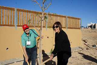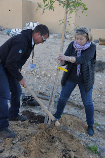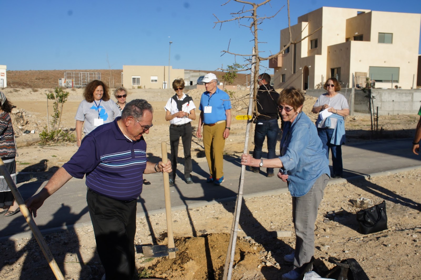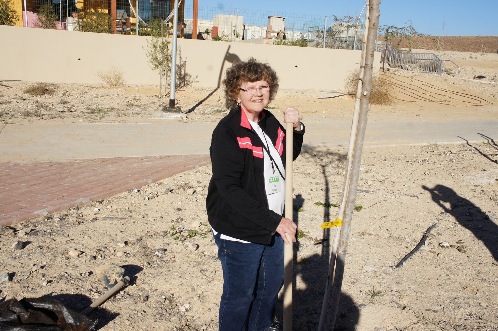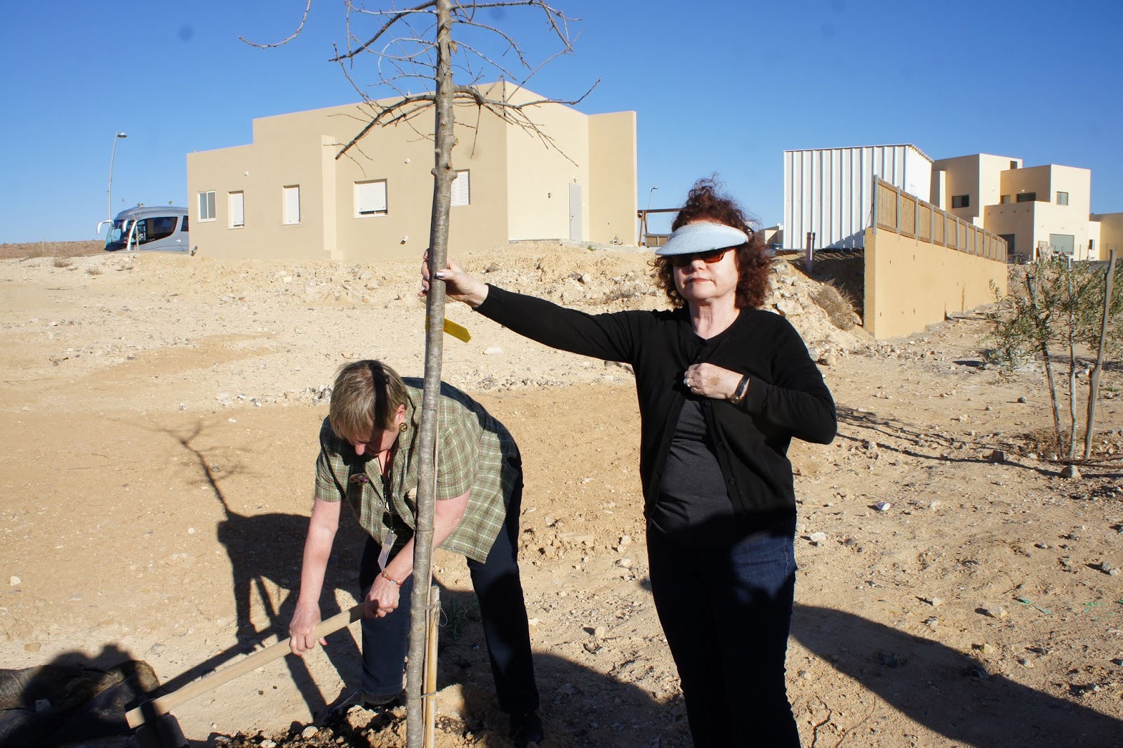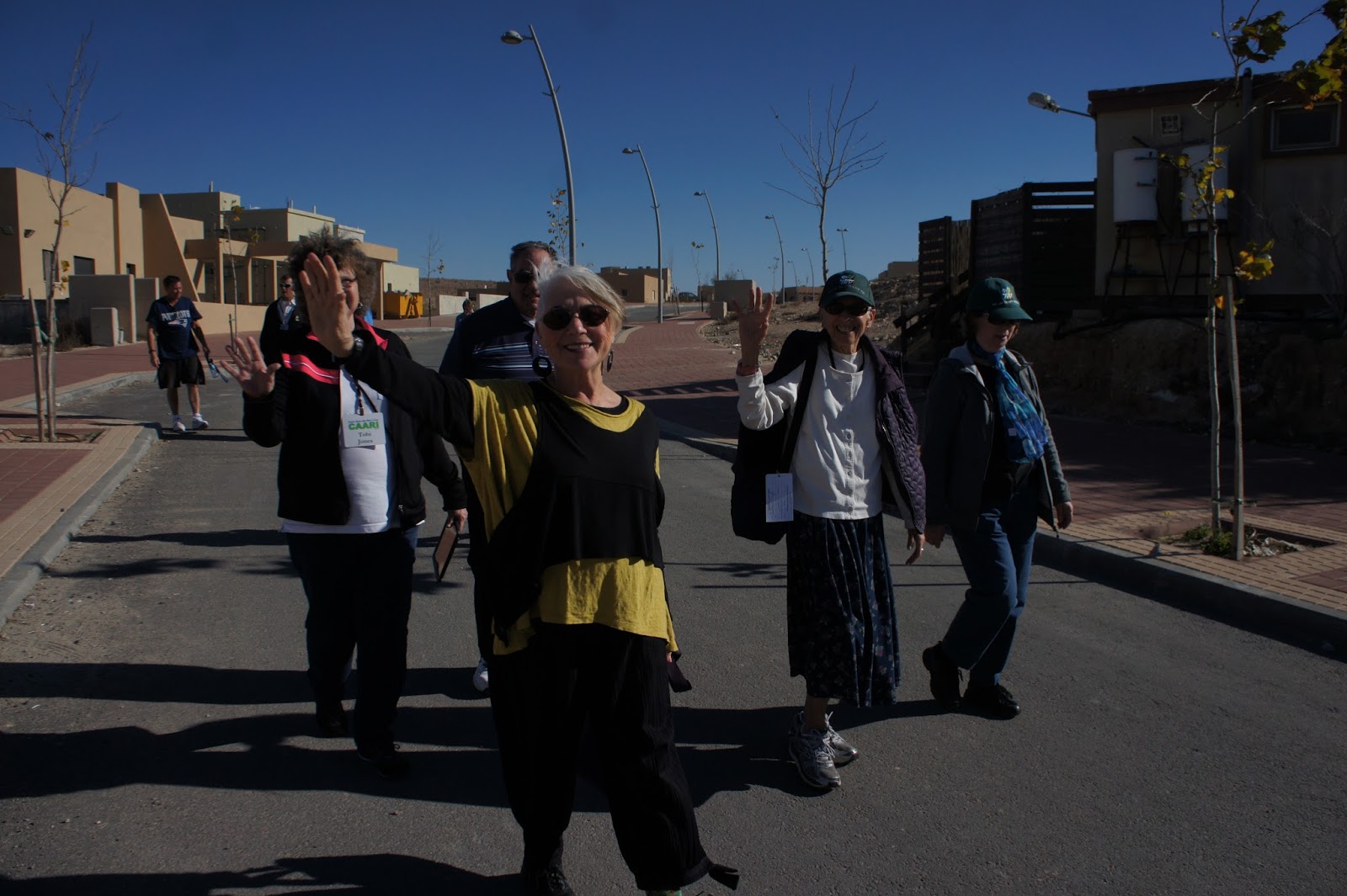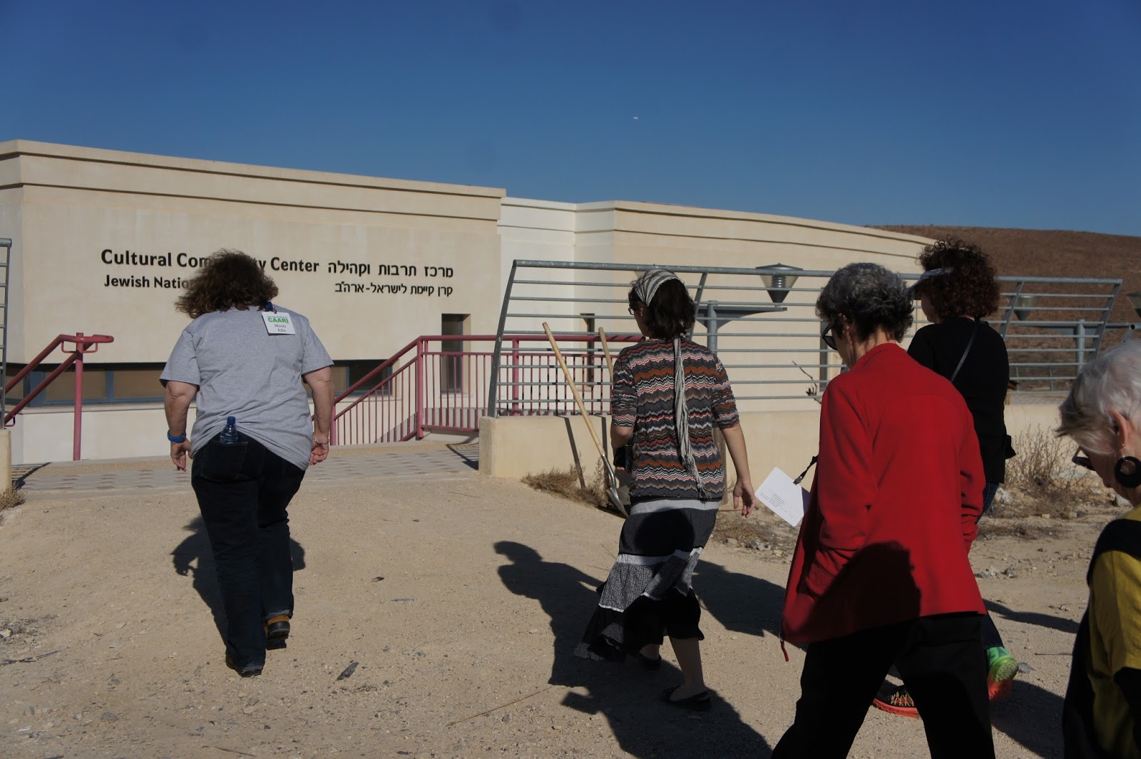 Merchav Am Visit – We stopped in the middle of nowhere, Zecharia our wonderful bus driver, found us an Aroma Restaurant at Shoket Junction – one of CAARI’s favorite Israeli cafe chains! Then on to the Merchav Am community located on a hill between Sde Boker and Yeruham, with magical desert scenery. Our host, Allison, welcomed us. We admired her energy, enthusiasm, spirit, sense of humor and native English! She took us for a tour of community showing us the original caravan housing and the new housing which she and her family will be moving to in the next few months. Their new community service is amazing.