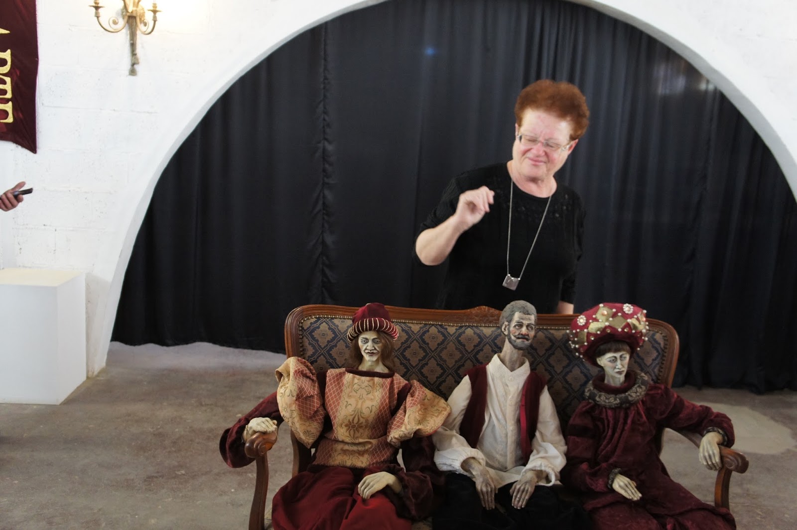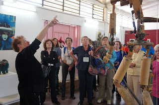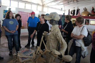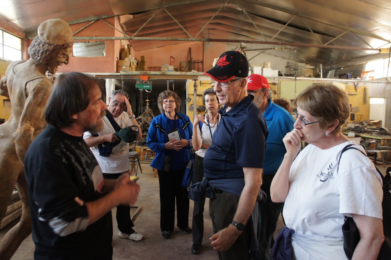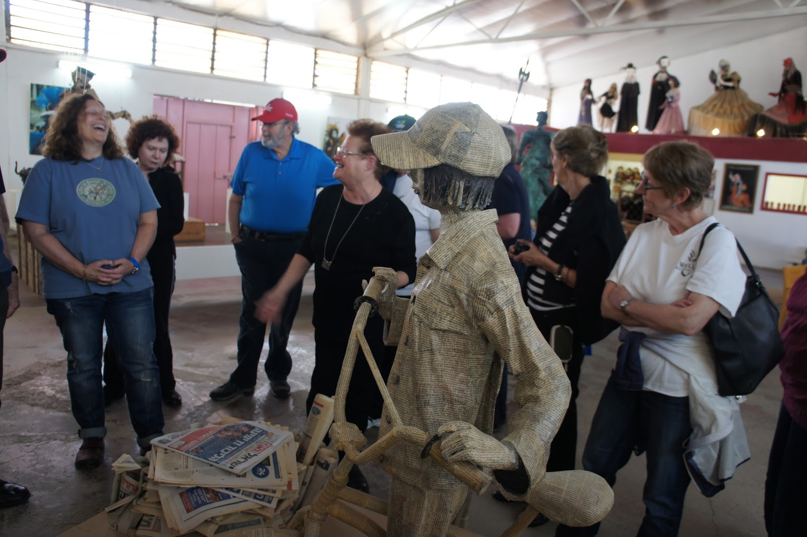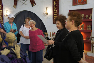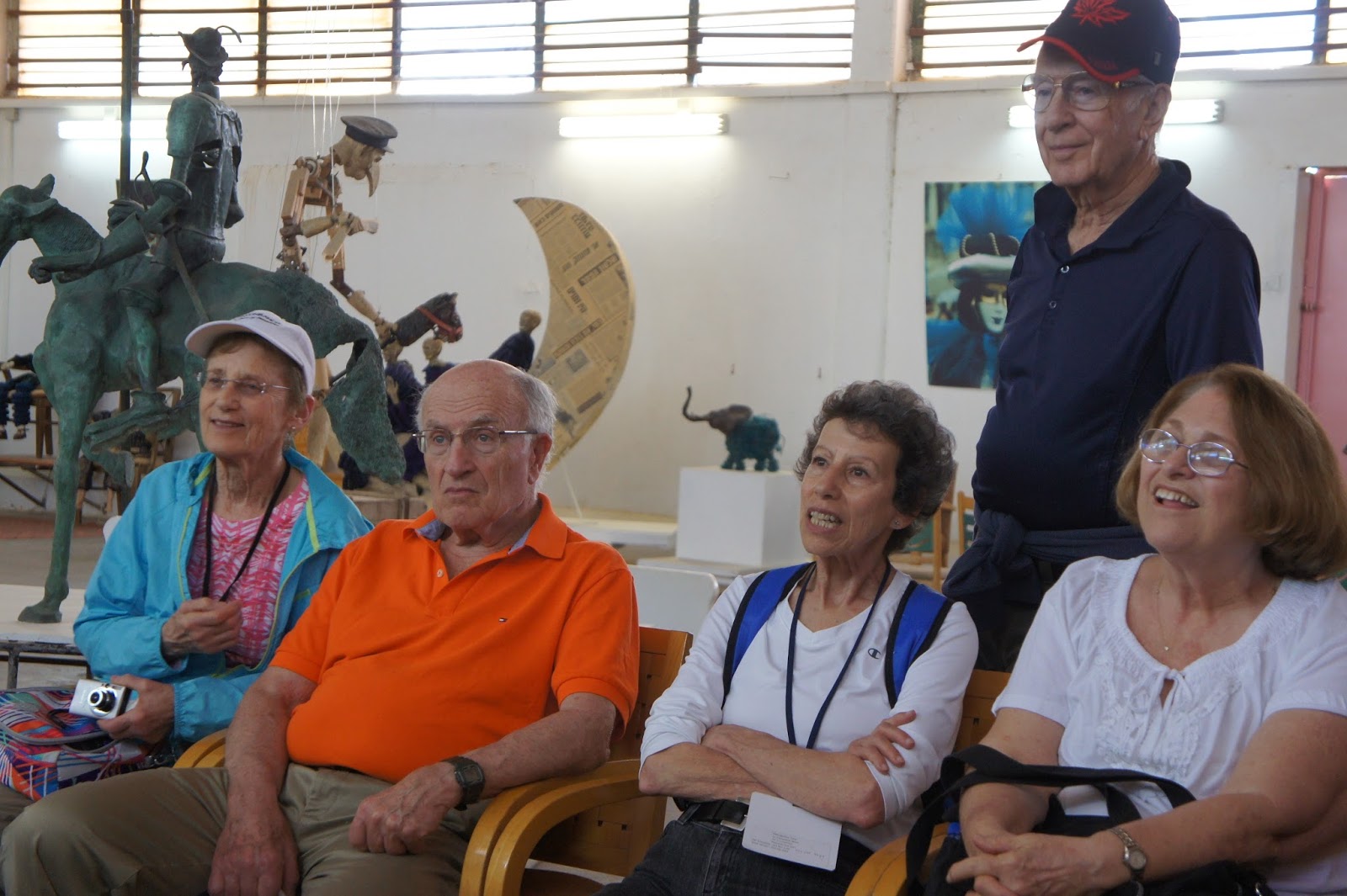 In the afternoon, we boarded the bus for a ‘ride’ up the hill to Arad and a visit to sculpture artists, Miri Leibovitch and Edward Schuster. The “Eshet Lot” Artist’s Quarter is located in the industrial center . The hangars, which were converted into galleries.. CAARI was so impressed with the colorfully dressed and detailed dolls,made out of colorful pressed paper, look so human and Shruster’s large bronze sculptures. What talent!