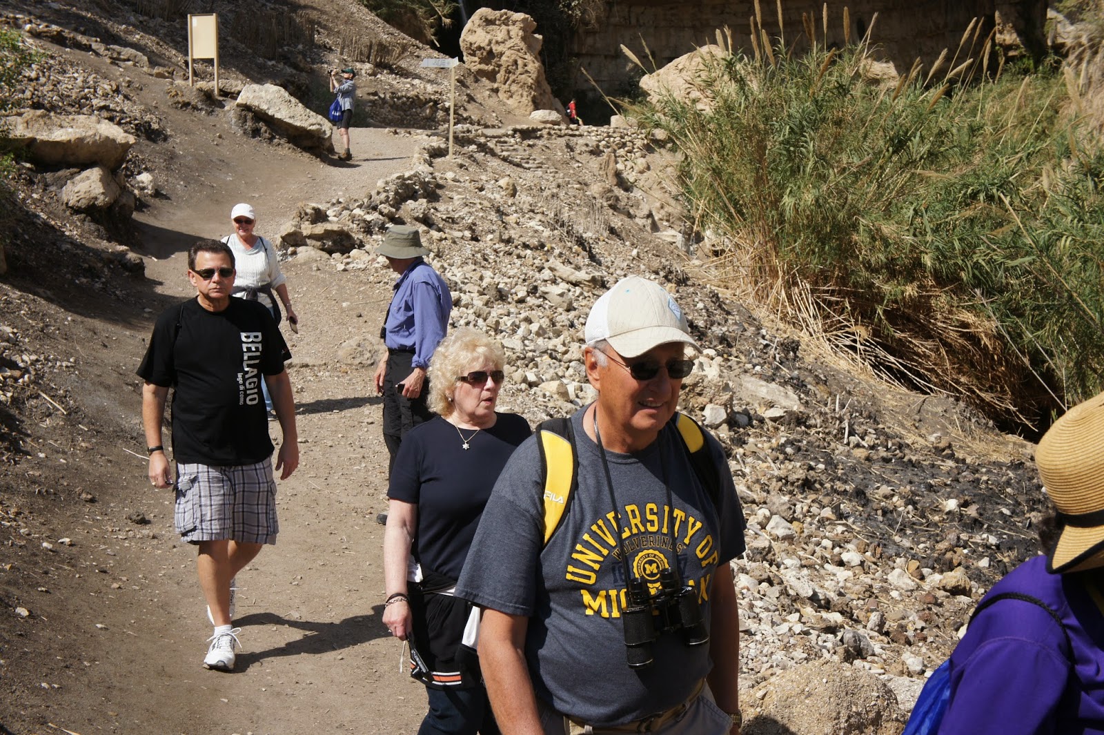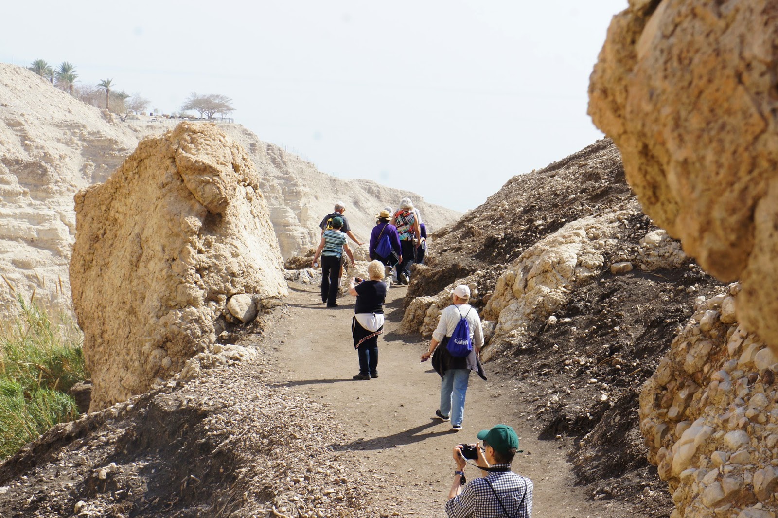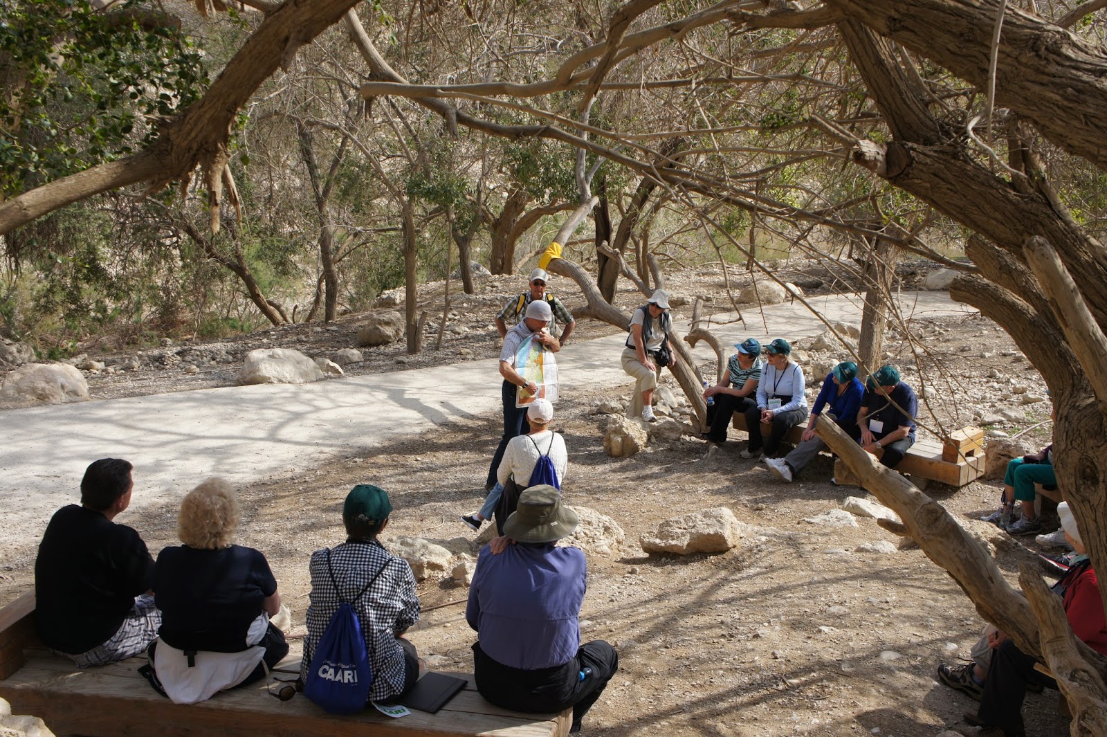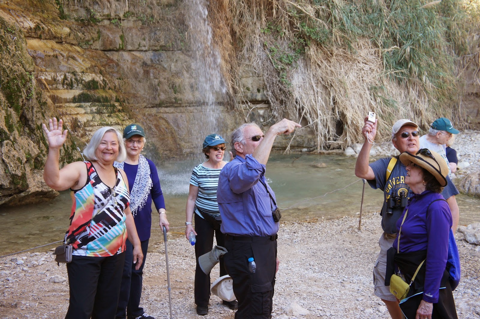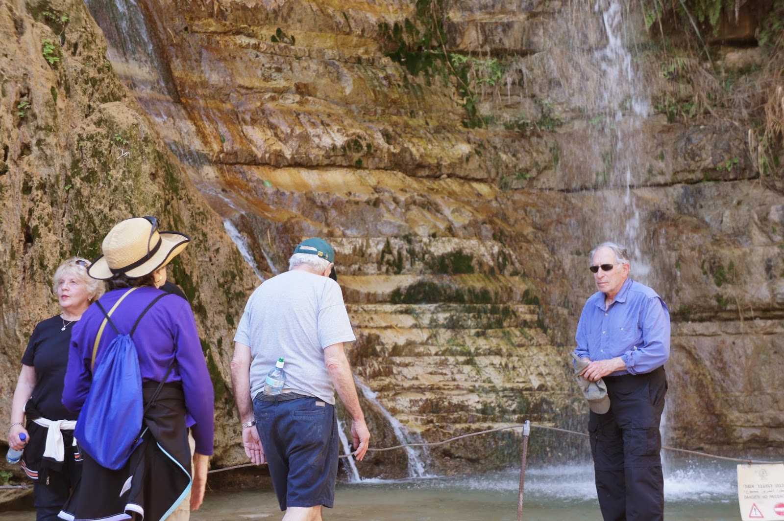 After breakfast we left for our hike at the Ein Gedi Springs. This spectacular Nature Reserve, has two year-round streams, the David Stream (named after King David) to the north and the Arugot Stream to the south. Neil began our hike with a geological explanation and with a discussion about the 6 references in the |Bible to Ein Gedi. He read the portion about King David and Saul in the Book of Samuel where King goes into a cave and David cuts of the corner of his robe.