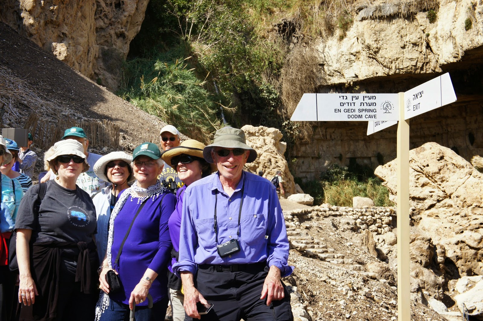 After breakfast we left for our hike at the Ein Gedi Springs.  This spectacular Nature Reserve, has two year-round streams, the David Stream (named after King David)  to the north and the Arugot Stream to the south. Neil began our hike with a geological explanation and with a discussion about the 6 references in the |Bible to Ein Gedi.  He read the portion about King David and Saul in the Book of Samuel where King goes into a cave and David cuts of the corner of his robe.
