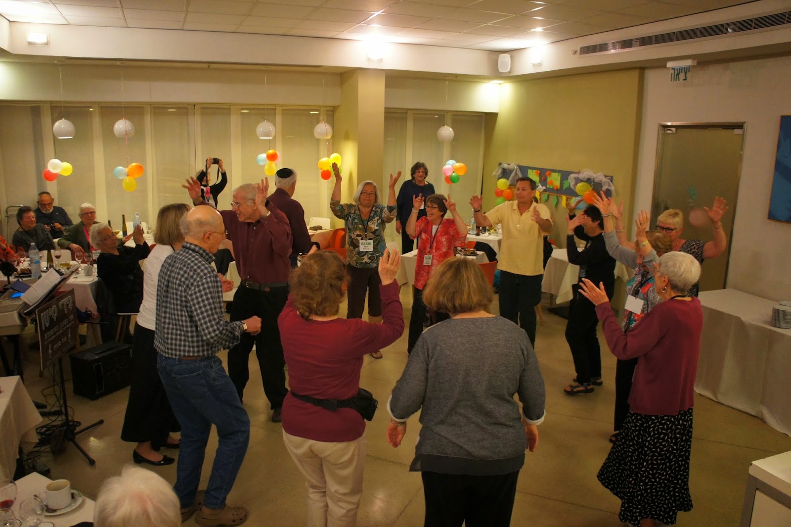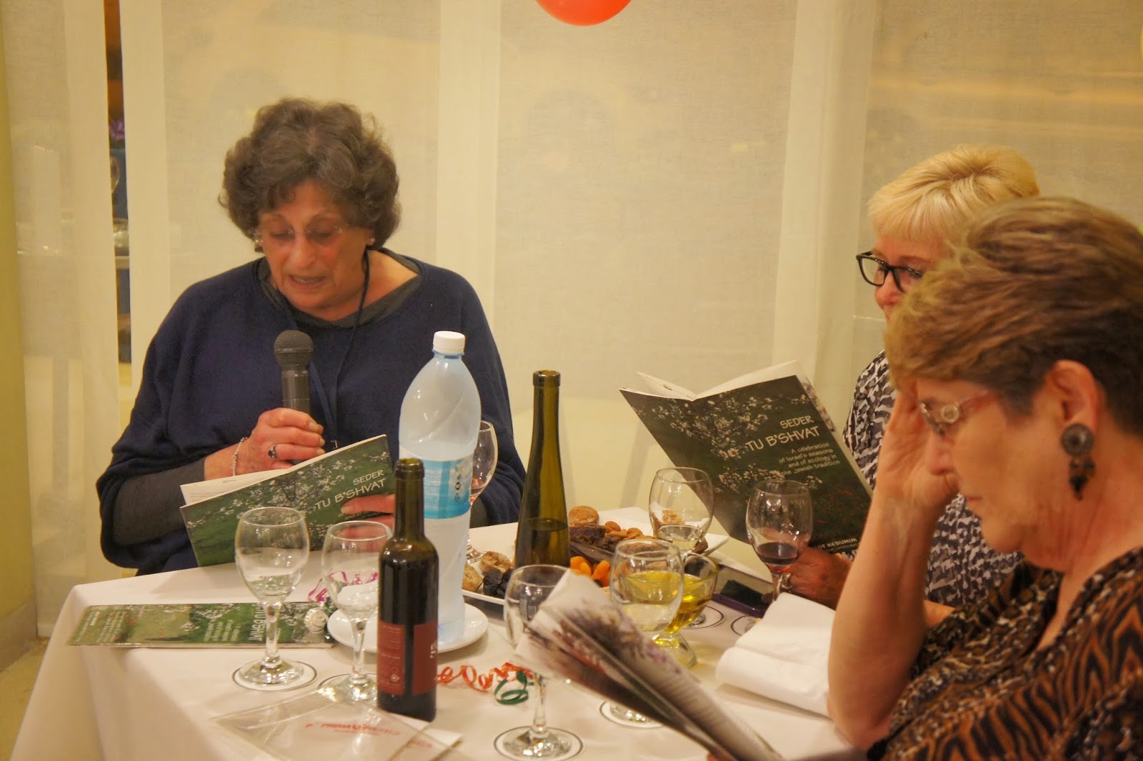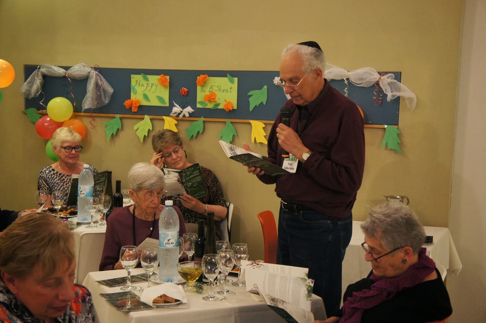 From Rosalie’s Report – That night, erev (evening) Tu b’Shvat (Jewish Arbor Day), we had a superb Seder and party. The Seder was led by Paul and Marion, which began with the traditional kiddishes and blessings. As in previous years, we had a wonderful keyboard player who played appropriate music as we read the story of the holiday and drank wine and ate dried fruits…..After the reading, we sang and danced….to Israeli, American, Yiddish, and even some Latin music……and drank more wine….and had awesome desserts….and it seemed that everyone had a really special, happy time.