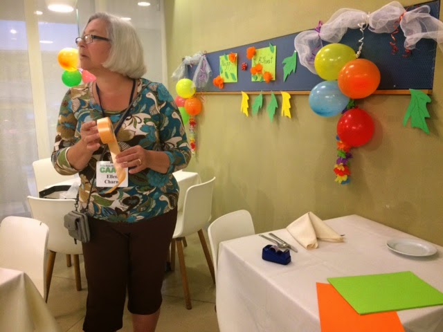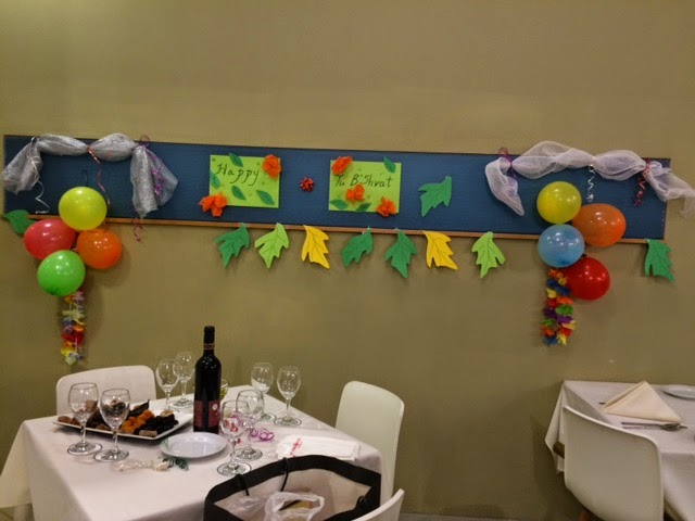 Back from the Forest – time to decorate for the TuBshvat Party. Diane organized the ‘committee’ and work they did – made they room very festive!!