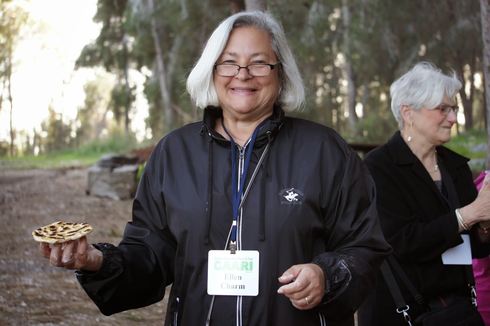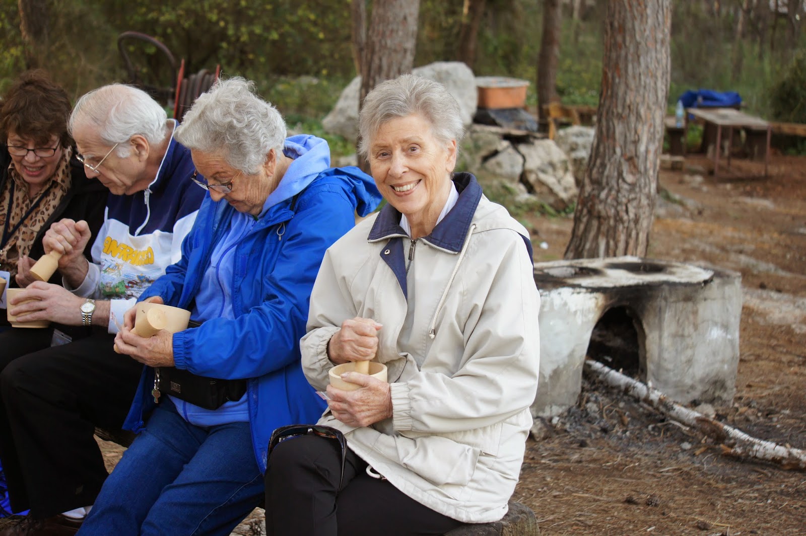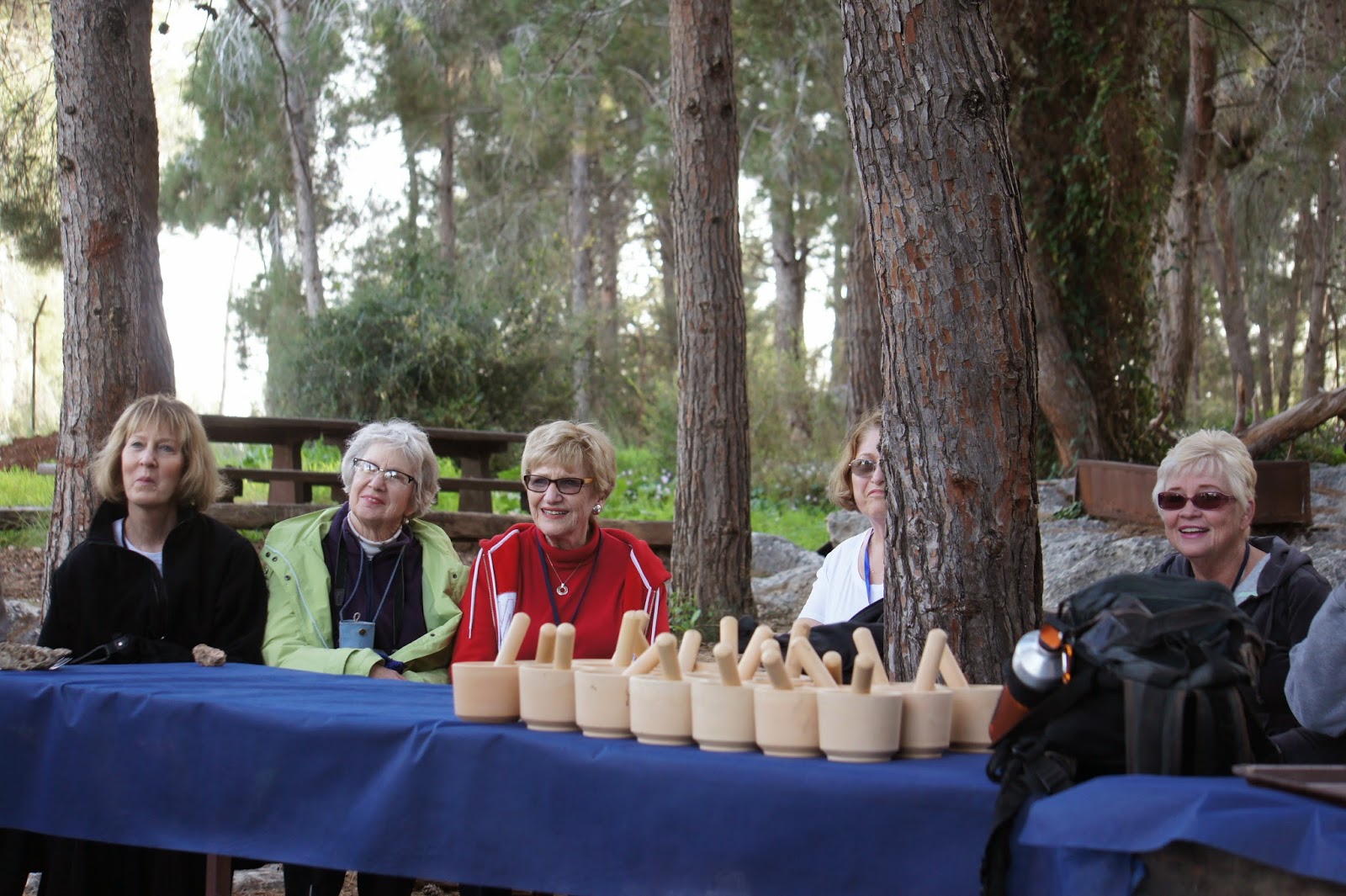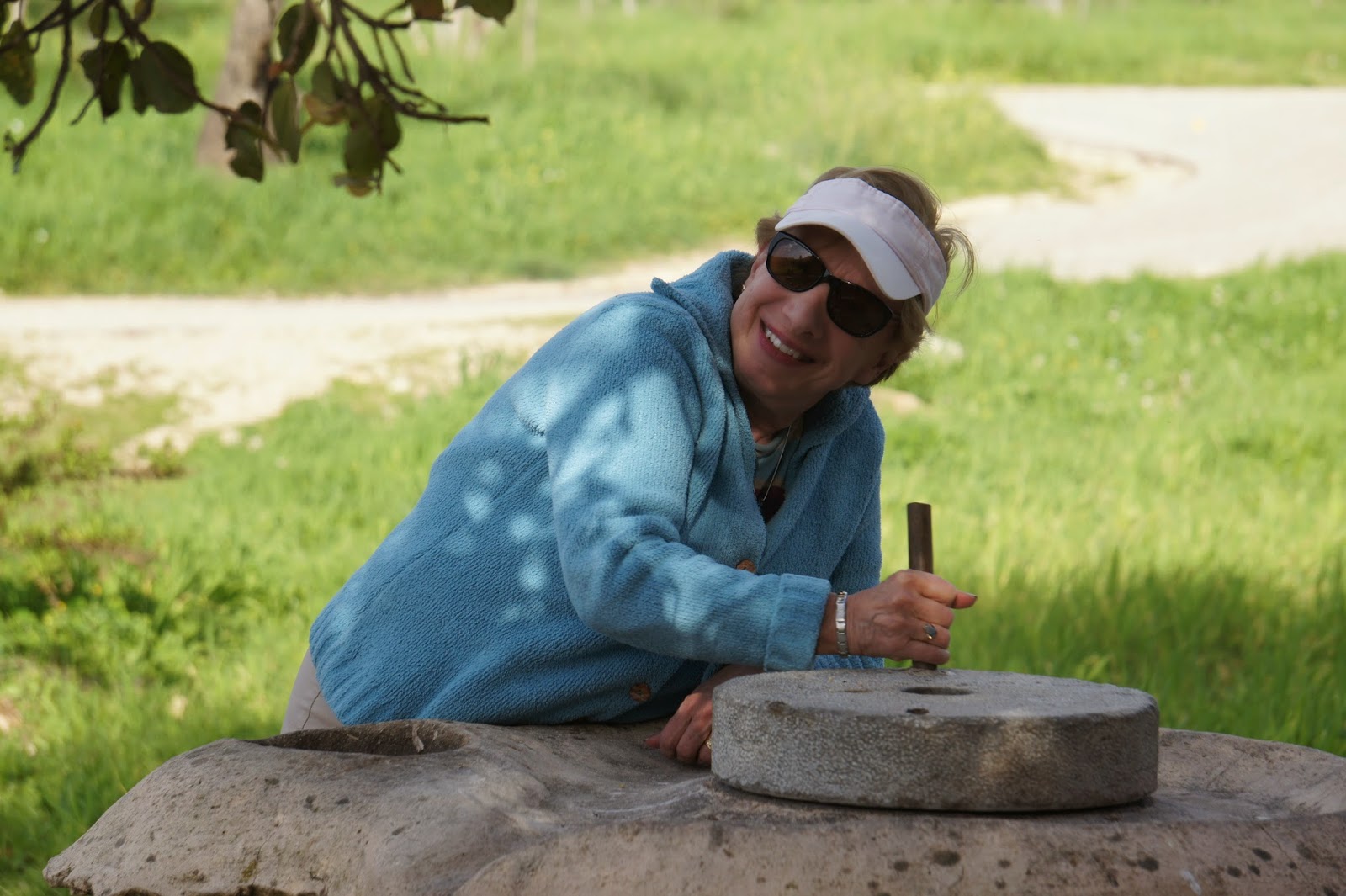 In the afternoon, we visited Neot Kedumin, a 625 acre park devoted to trees, flowers ans shrubs mentioned in the Bible. Our terrific guide could double as a stand-up comic….so that our tour was as entertaining as it was educational….and at the end of the tour we had a chance the use mortar and pestle to make zatar (a Mediterranean spice mixture of oregano, marjoram, mint…and perhaps something else I cannot remember)….which I add to many dishes when I cook…especially eggs. We also made small pitas for ourselves, and they were not bad at all.
