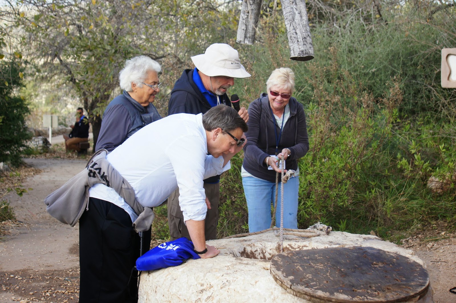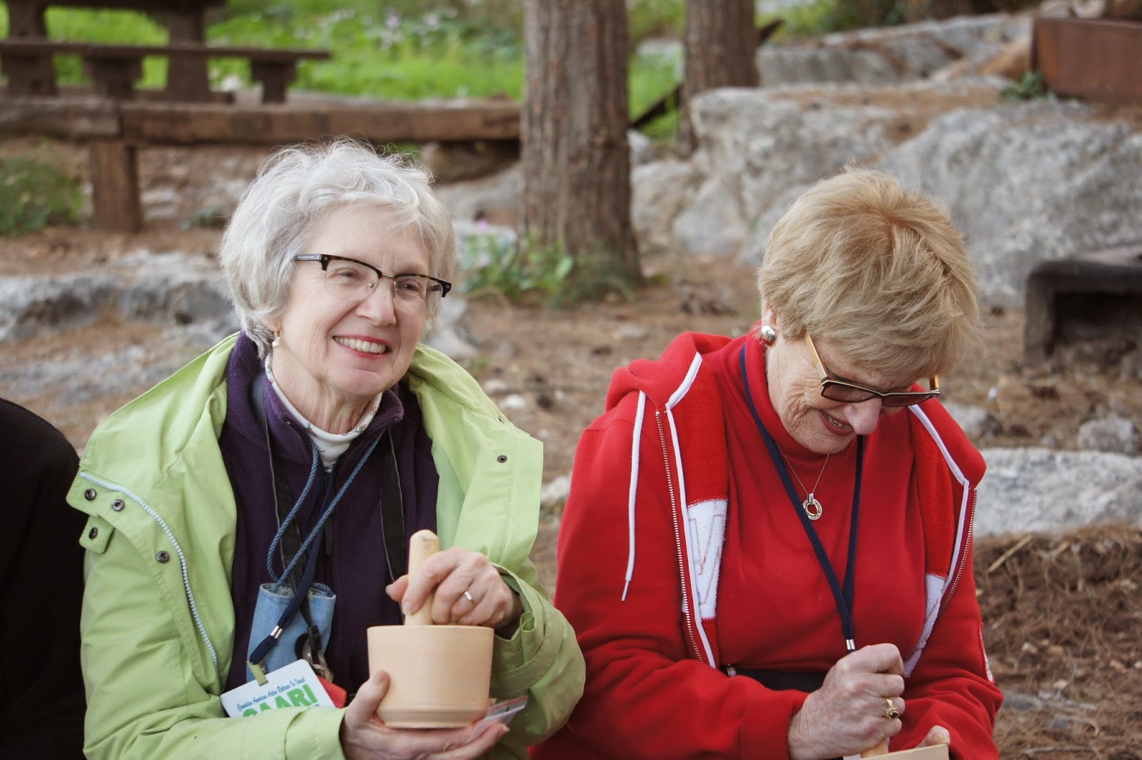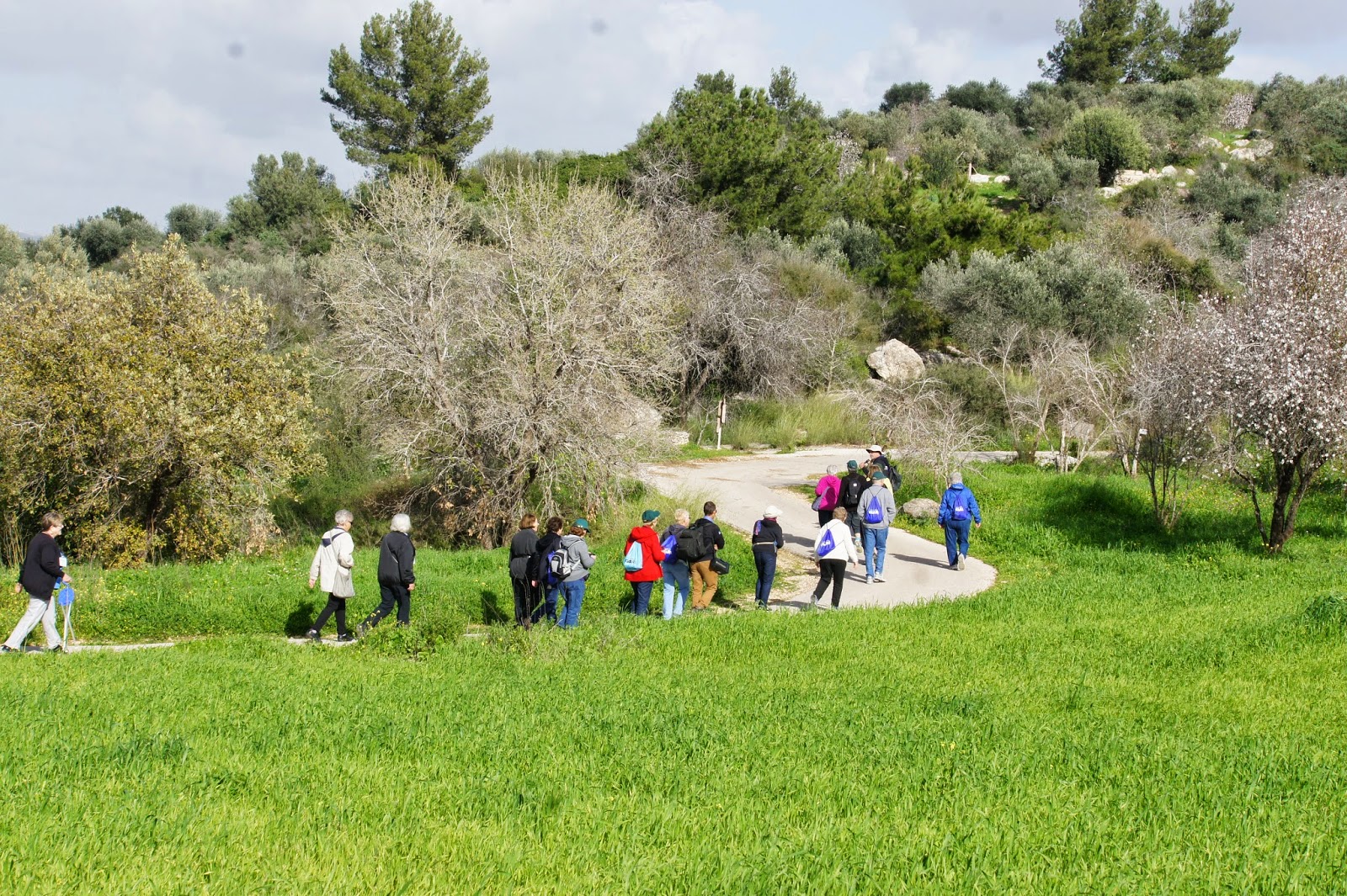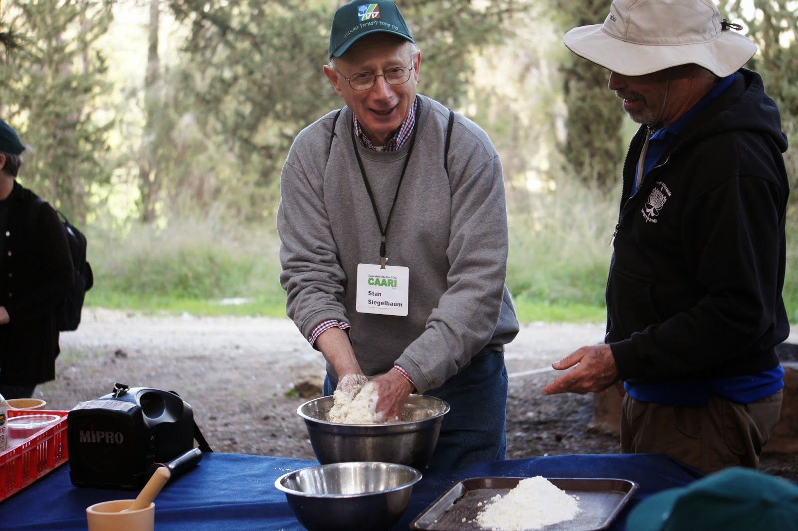 In the afternoon, we visited Neot Kedumin, a 625 acre park devoted to trees, flowers ans shrubs mentioned in the Bible. Our terrific guide could double as a stand-up comic….so that our tour was as entertaining as it was educational….and at the end of the tour we had a chance the use mortar and pestle to make zatar (a Mediterranean spice mixture of oregano, marjoram, mint…and perhaps something else I cannot remember)….which I add to many dishes when I cook…especially eggs. We also made small pitas for ourselves, and they were not bad at all.