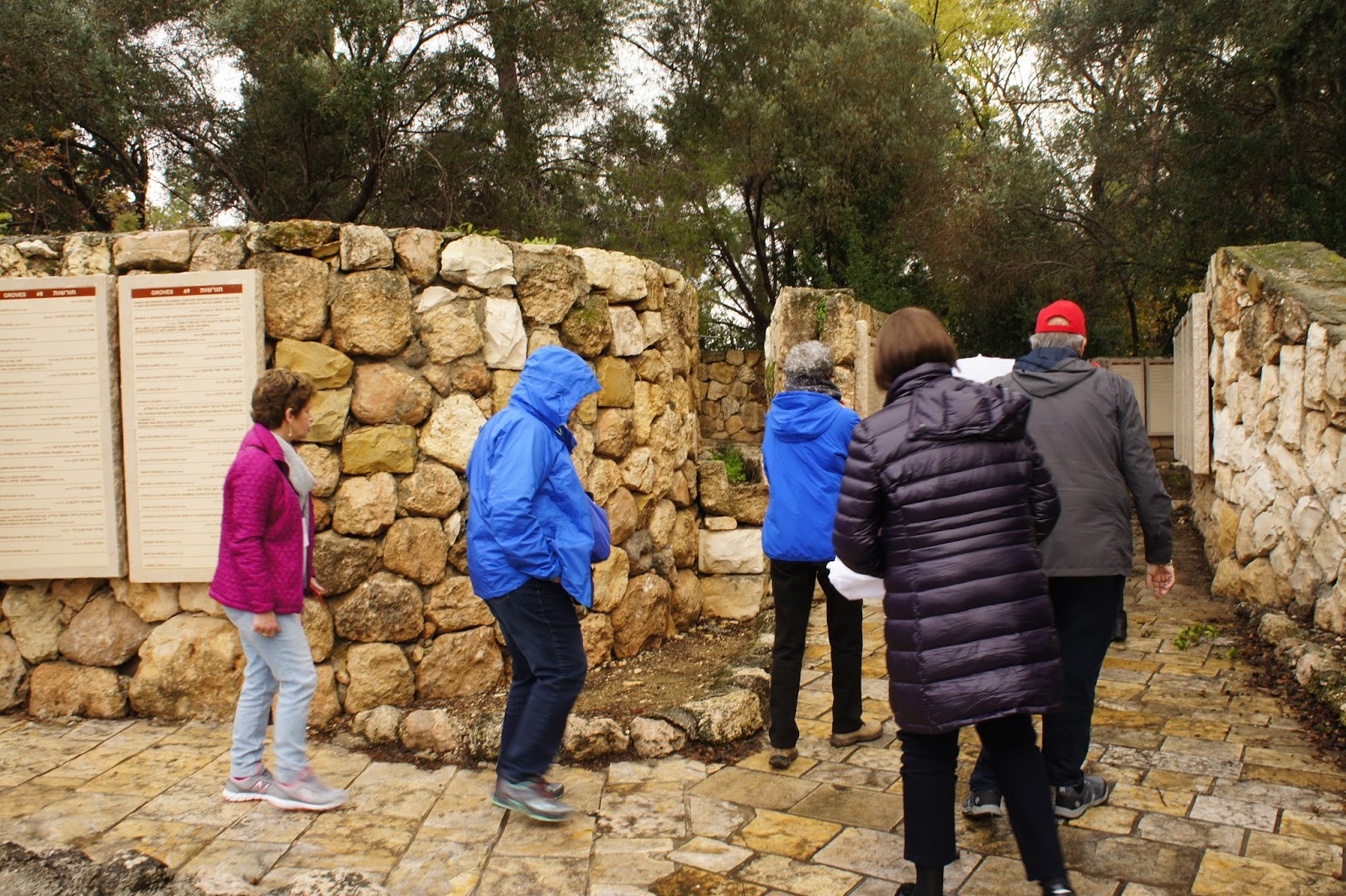 CAARI viewed the Ayalon Valley and the community of Ayalon and part of Modiin from an old Jordanian military position. We viewed a number of wild flowers in bloom : red anemones, tulips, persian and common cyclamen as well as allot of fruit trees like carobs, pomegranates, figs, dates, olive trees, etc. The park is also an archaeology site and place where Canadian Donors recognition is located. The Canadians recognized many of the names.