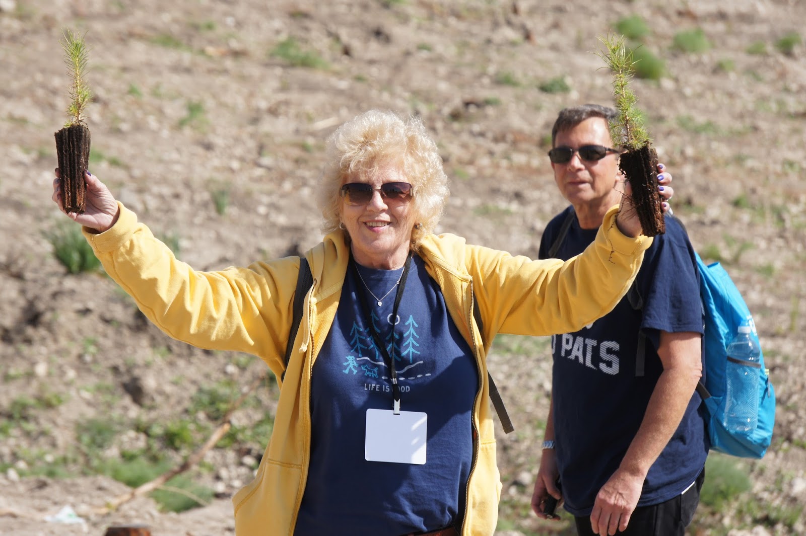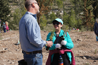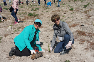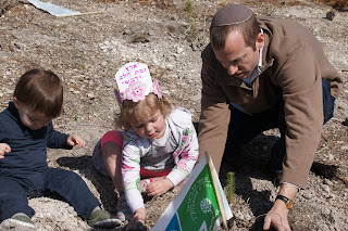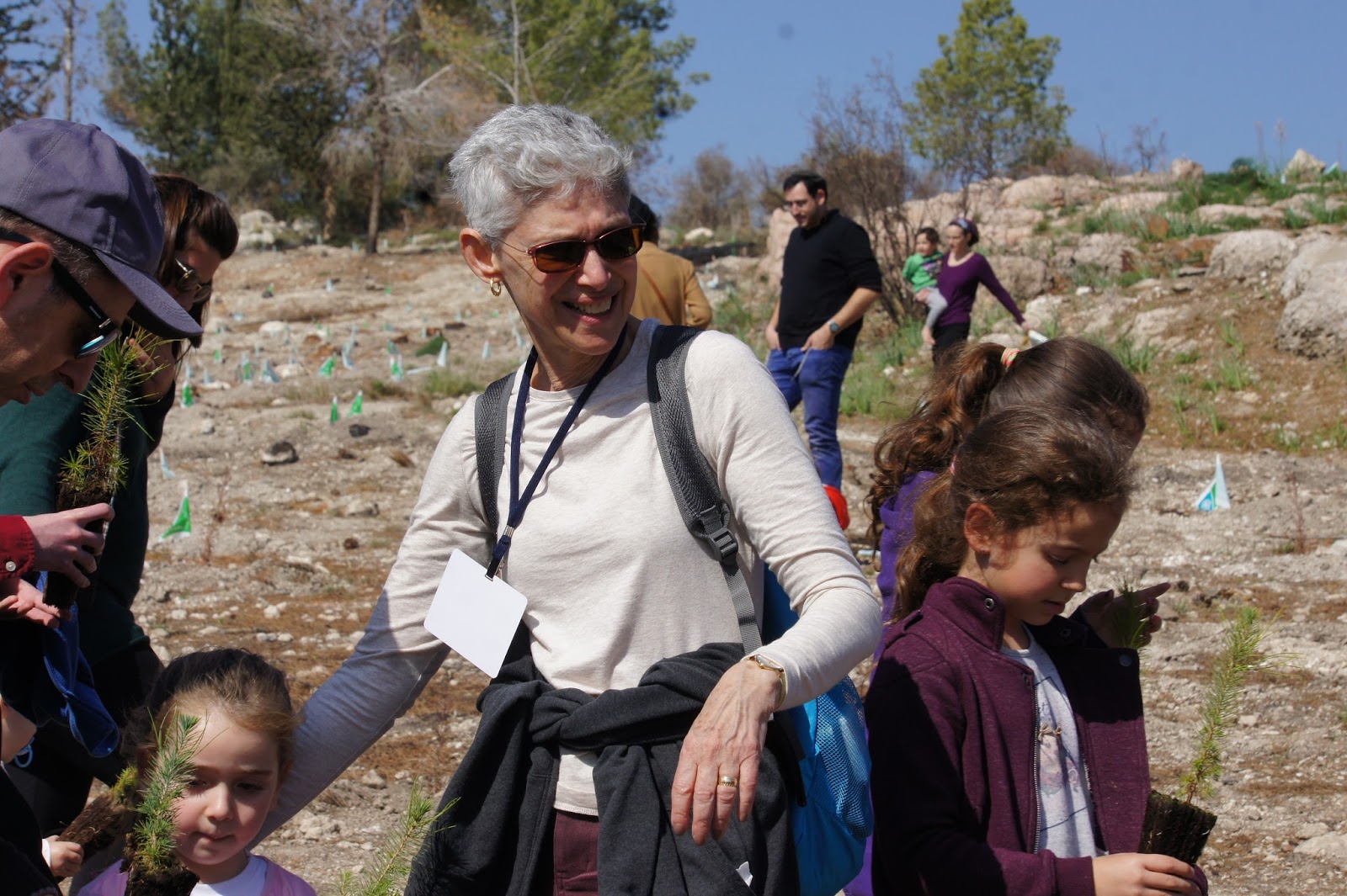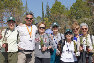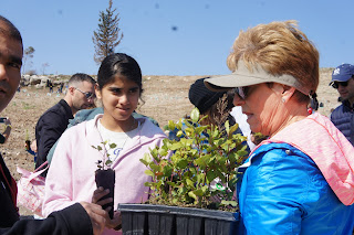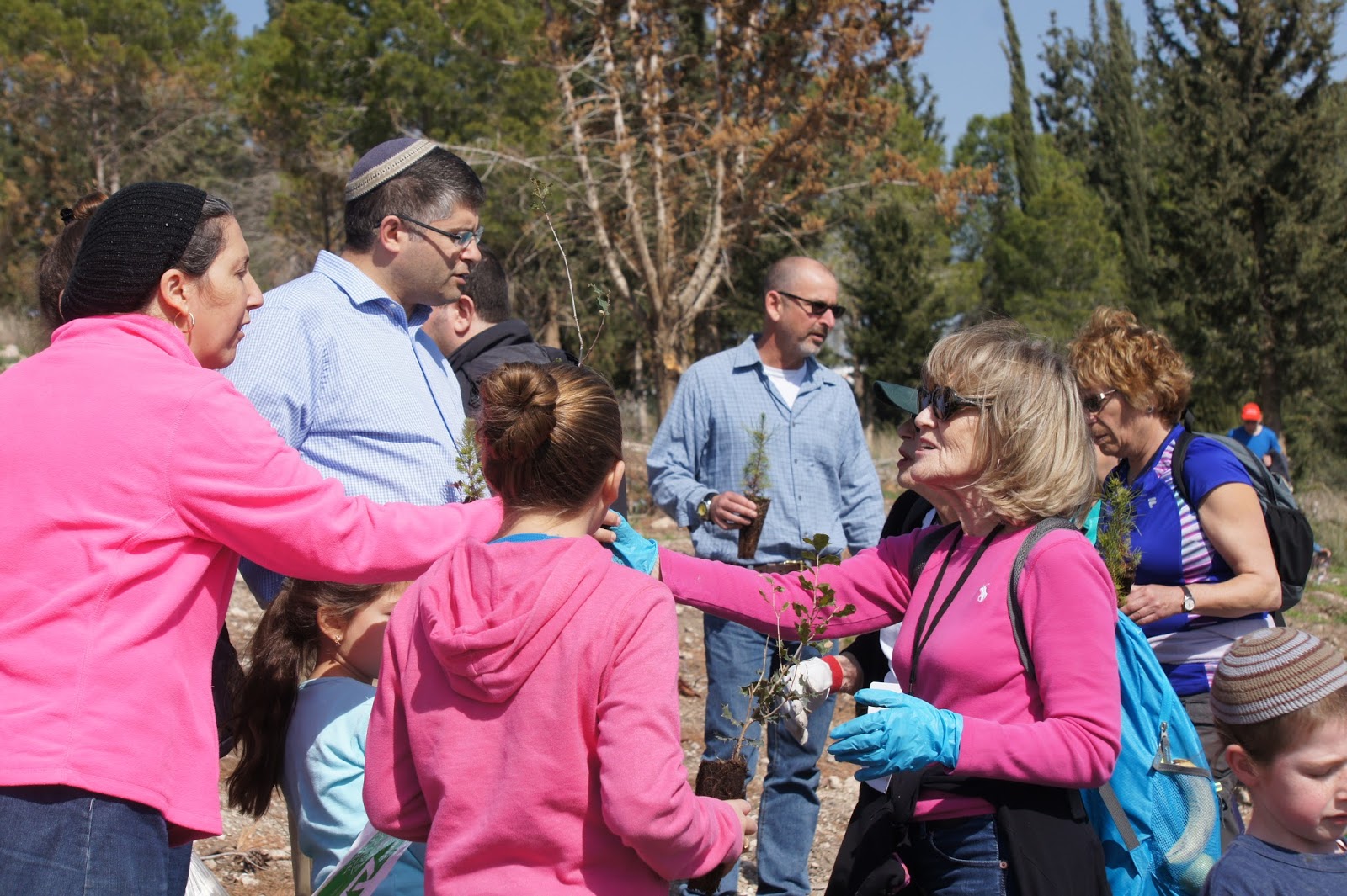 From early morning to afternoon thousands of people, mostly families came to plant – it was truly a family event! Mothers, fathers, children of all ages, religious and secular and even a few dogs arrived to proudly plant the little saplings! We greeted them in English and Hebrew and made new friends! We handed out over 5000 saplings before we left to return to the hotel to