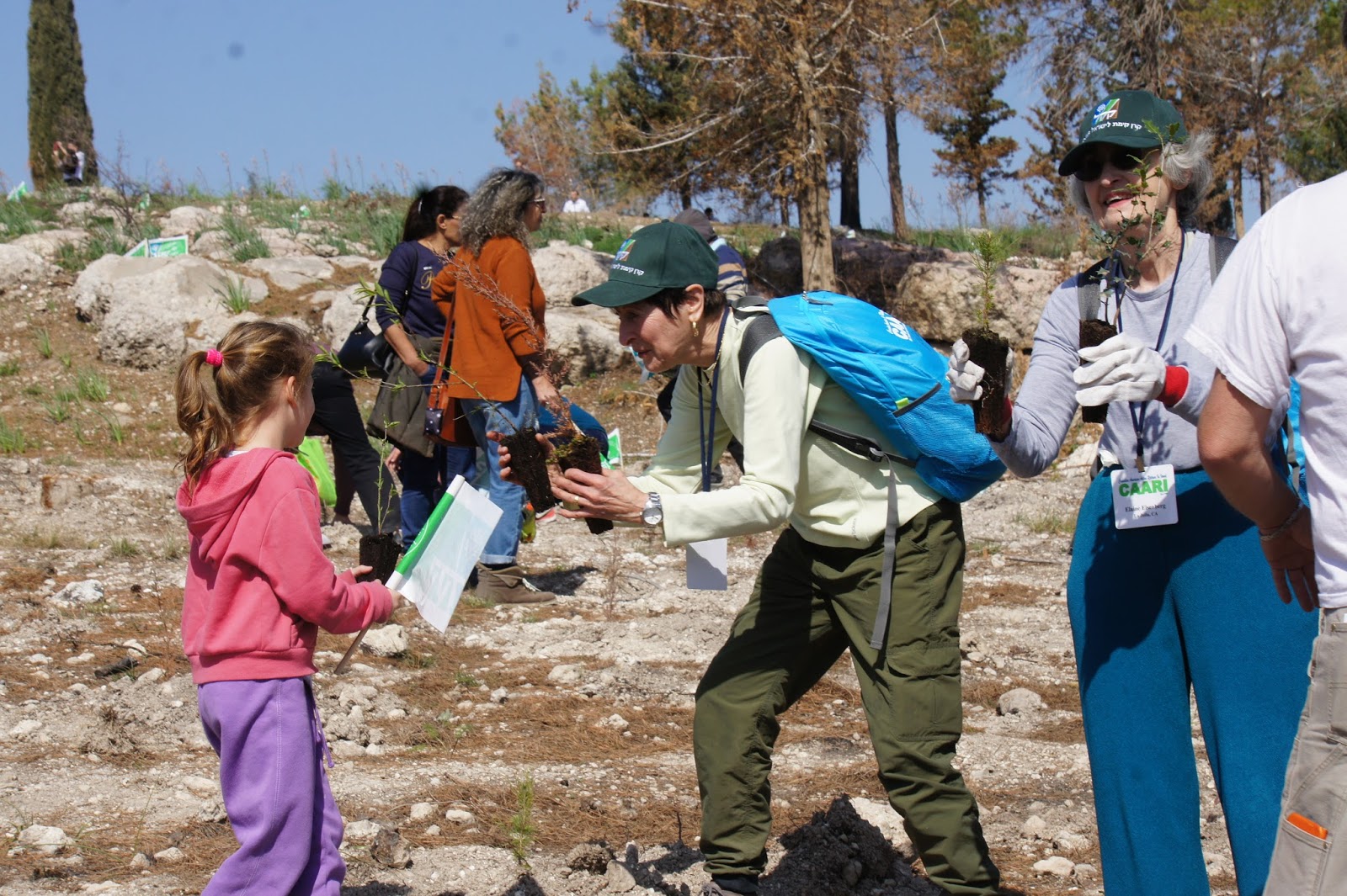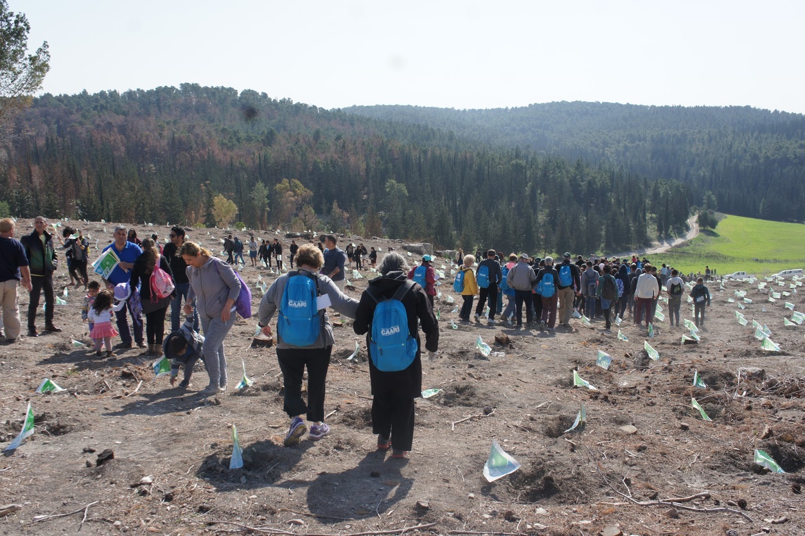 Wow – what an event! Throughout Israel KKL held is annual Tubshvat National Tree Planting Day. CAARI was on site to help direct the crowds and hand out saplings. This year we traveled to Eshtaol Park, outside Jerusalem, which was one of the forests that was destroyed by the fall fires.