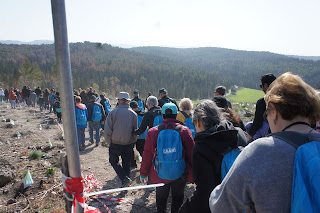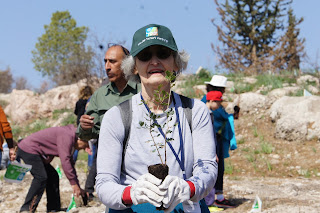 KKL workers had removed the trees on this huge hillside, dug holes and marked the hole with a KKL flag. You could still see some of the burned stumps on this barren hillside. And, could also see the spring plant vegetation returning.