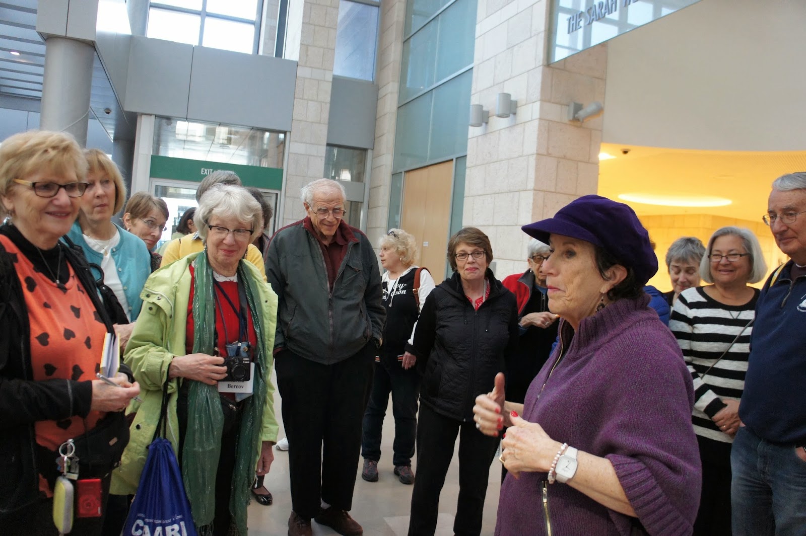 Shalom from Jerusalem where the snows have melted and all returning to normal. Although, temperatures a slightly below normal! But,much better than in the US and Canada. We began our day at the Hadassah Hospital at Ein Kerem. We were welcomed by Barbara Sofer, director of public relations for Hadassah and journalist, who gave us an enlightening tour of this impressive, world reknown medical facility. We began our tour in the newly constructed, Sarah Wetsman Davidson Tower, Wow – this has to be one of the most modern, advanced inpatient medical center in the world! The operating centers, with 30 operating rooms are located underground, designed with both the needs of the patients’ and todays and tomorrow’s changing medical needs. From there, we visiting the Mother & Child Center. The Hadassah Hospital treats ALL Israelis! A victim of a terrorist attack, Dvif Musai, spoke to us about his treatment at Hadassah for the past 15+ years. At the age of five he stepped on a mine which severely damaged his body, from head to toe. His attitude, fortitude and medical care, he said, is attributed to the care and comfort he had and continues to have at Hadassah Hospital. Following the hospital tour, we visiting the Chagall Windows in the hospital synagogue – beautiful!