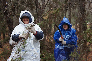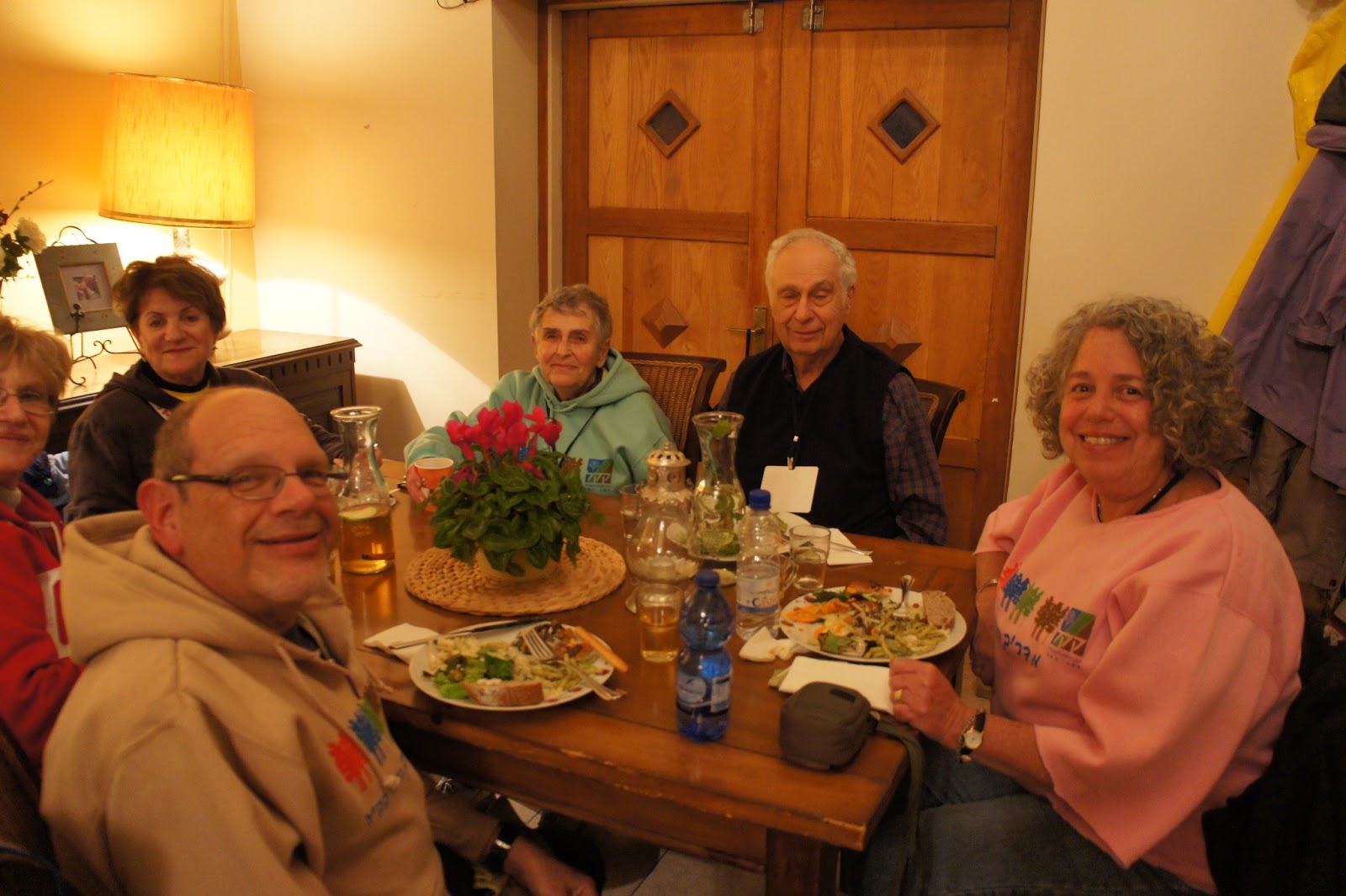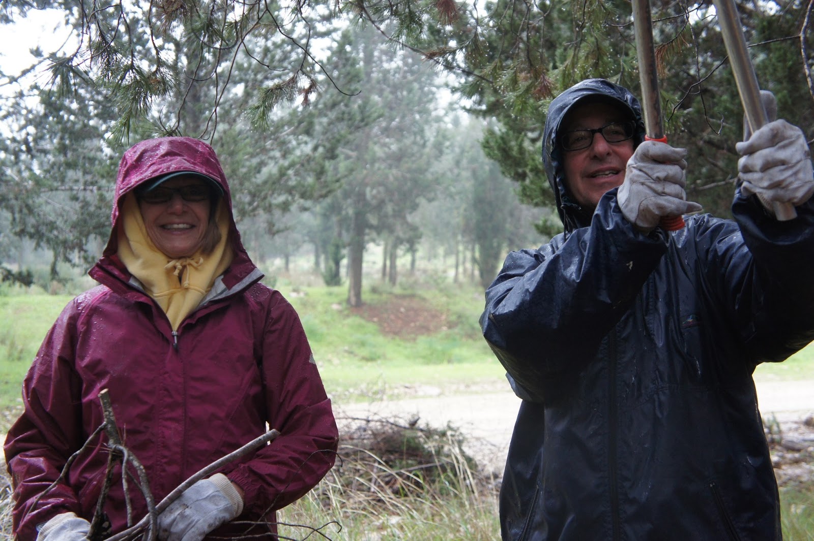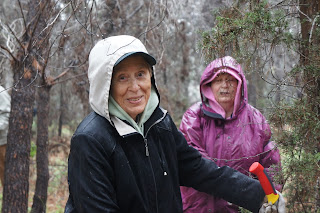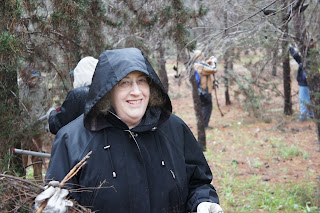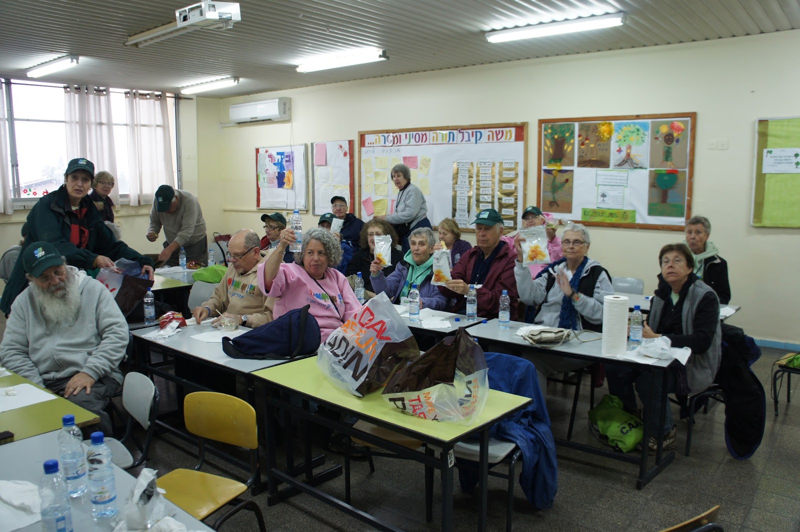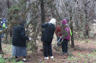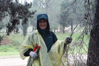 Today was our scheduled forest day. The few clouds,threatening rain and cooler temperatures did not deter our group. We made our way to the beautiful Canada Park. This is an amazing park not only in area, but in the history and archaeological finds that go back centuries. Jessica Larson, from the JNF Israel Canadian Office greeted us along with Mire, the forester. We hiked a short distance to an area that had to be cleared to prevent future forest fires and that we did….even though a light rain persisted! To warm us up, we were served ‘forest’ tea, made on site with fresh herbs from the forest – very tasty. Meir Malka, founder of the CAARI program met us and worked with us in the forest. After the area was cleared, Meir took us for a tour of Canada Park. Our picnic lunch had to be held indoors and Meir was able to use his influence and get us into one of the elementary schools. Then we had an ‘eye opening’ tour of the growing Beit Shemesh community. Time for dinner and we had a lovely one at Margo’s, at Kibbutz Zorah!