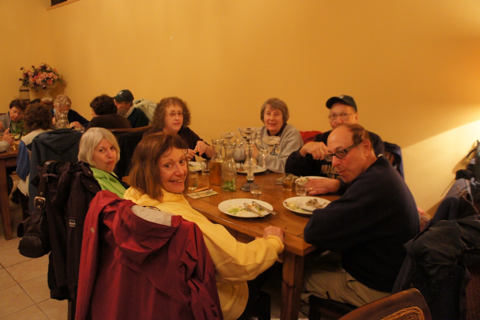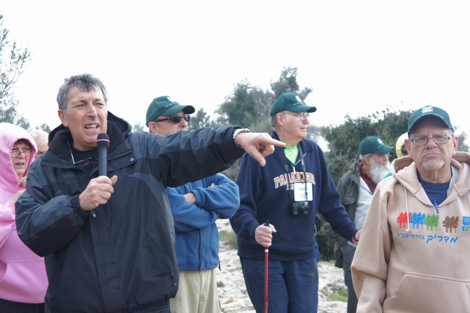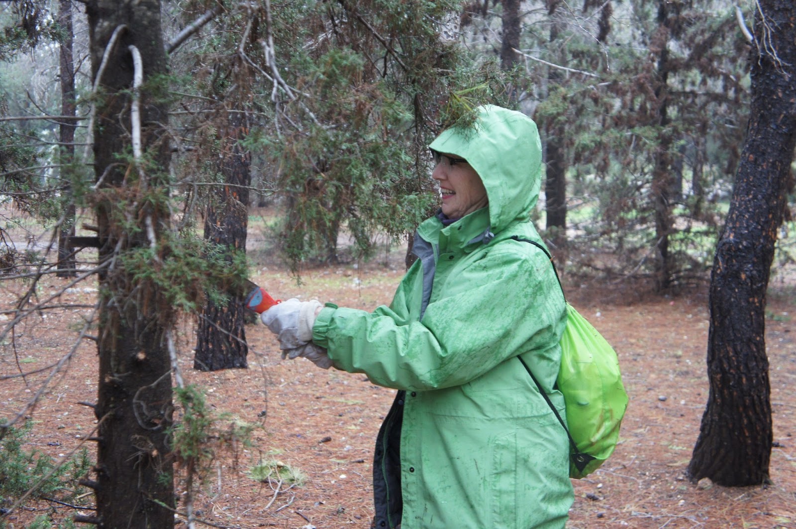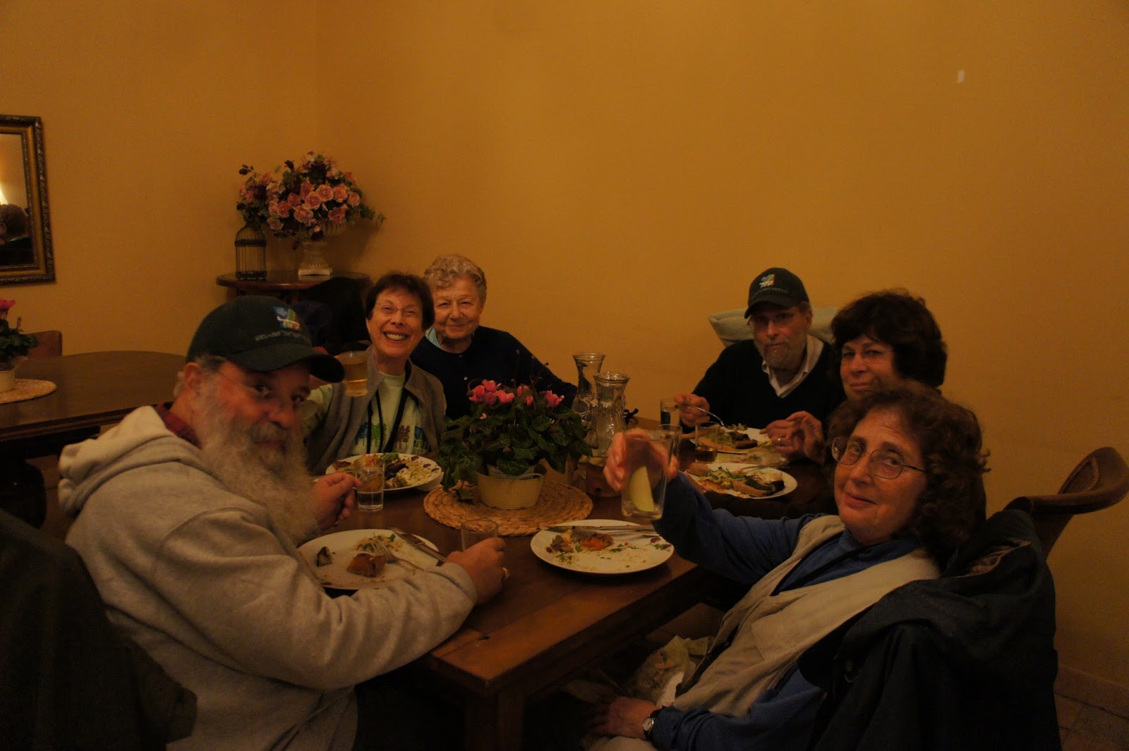 Today was our scheduled forest day. The few clouds,threatening rain and cooler temperatures did not deter our group. We made our way to the beautiful Canada Park. This is an amazing park not only in area, but in the history and archaeological finds that go back centuries. Jessica Larson, from the JNF Israel Canadian Office greeted us along with Mire, the forester. We hiked a short distance to an area that had to be cleared to prevent future forest fires and that we did….even though a light rain persisted! To warm us up, we were served ‘forest’ tea, made on site with fresh herbs from the forest – very tasty. Meir Malka, founder of the CAARI program met us and worked with us in the forest. After the area was cleared, Meir took us for a tour of Canada Park. Our picnic lunch had to be held indoors and Meir was able to use his influence and get us into one of the elementary schools. Then we had an ‘eye opening’ tour of the growing Beit Shemesh community. Time for dinner and we had a lovely one at Margo’s, at Kibbutz Zorah!