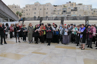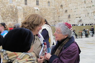 Ah Friday – a day to prepare for the weekend and a CAARI day off to do our own thing. Well, this Friday was an exception. During the past week, we realized that we would be in Jerusalem for Rosh Chodesh. Several of the people were on CAARI when we had Anat Hoffman, from the group, Women of the Wall, speak to CAARI. We felt we wanted to join the women for Rosh Chodesh prayer. 16 women and 5 men decided to wake up early and depart the hotel and 6:15 to walk to the Wall for the service. Off we went, climbing hills, steps, going down valleys and up again until we came to the Western Wall. We were warmly greeted in by the “Women” and the service began. It is hard to describe the feeling – hearing all those women’s voices in unison and being at the Wall was all very moving. Of course, there were police around, but the prays continued and the dancing began. From there we started our walk back to the hotel where our morning speaker, Amotz Asa El spoke to us on Israel’s Current Situation, beginning with the impact of the Arab spring. Amotz’s incite and frankness gave us insite into the situation and was much appreciated.