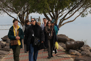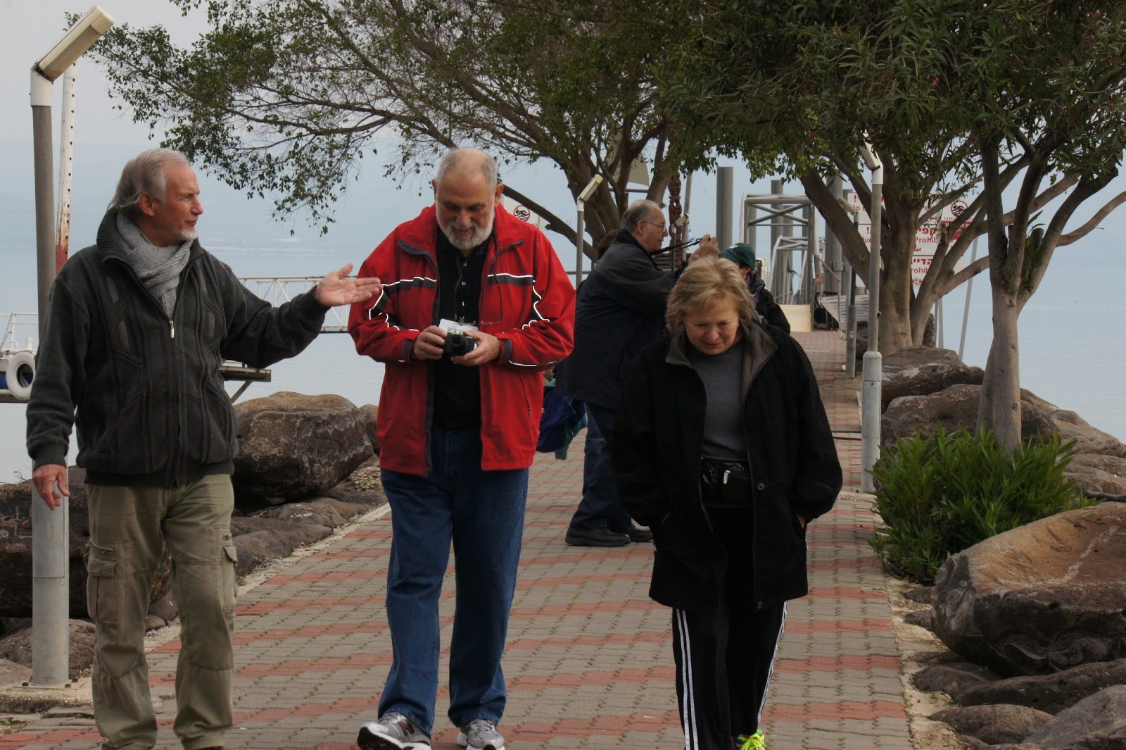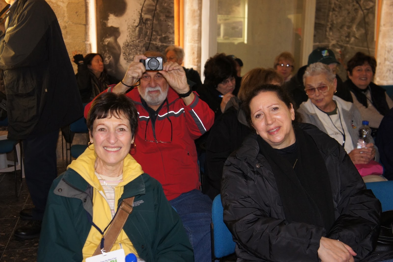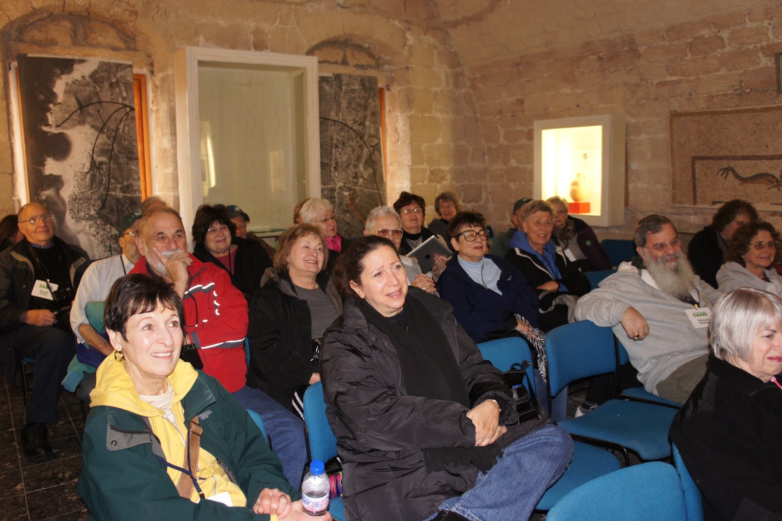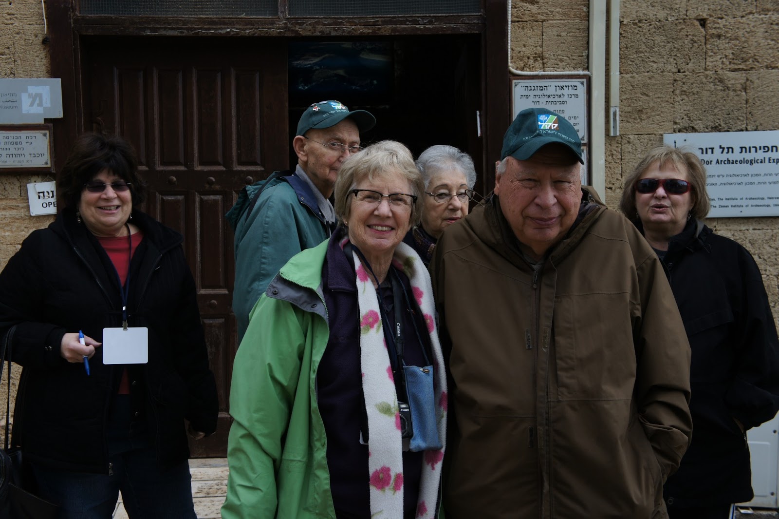The day began with the sumptuous Israeli breakfast and they serve some breakfast here at the Dan Carmel. The group boarded with bus and began the journey to the ancient port city of Dor, located at Kibbutz Nacshalim to meet Kurt Raveh an underwater archaeologist who was our guide for the day. Some of us knew Kurt from past CAARI programs and always impressed with his knowledge, experiences and his love for Israel – his adopted home. Kurt was instrumental in assisting with the recovery of the 2000 year old boat found in the Sea of Galilee, near Nof Ginosauer. He described the amazing story of how the boat was found and recovered. We were all impressed with how they overcame the problems in the recovery of the ship and more impressive was the ship itself. We were told the story of how the boat was secured and the foam applied to protect the wood (that under water for all those years) the boat was put in water and slowly added wax. One problem – worms began attacking the wood. So…what they did they do…used goldfish to eat the worms. Back to the hotel for a quick rest before the traditional Shabbat Dinner. The group was impressed with the number of your families who came to celebrate Shabbat, the camaraderie of families, the children and singing and the variety of foods. For us, it was a joyful introduction to Israel. We were also impressed with the warmth, humor and friendliness of the group. Looking forward to the coming days!