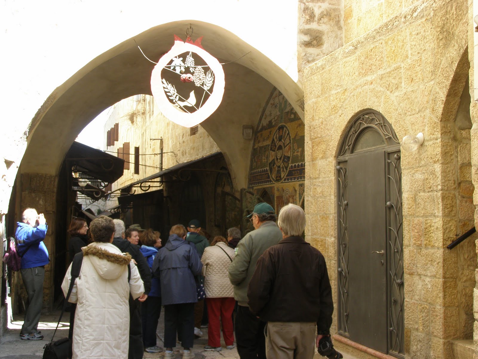 The Old City is full of civilizations and cultures – from Greek, Roman, Mamuluks, and so on! We captured a little of this as we walked the Four quarters. We learned about walls, relics, battles, the Jewish High Priests, the First and Second Temple Periods – and so much more! We walked the quarters, walked the rooftops and challenged Susan who was trying to keep us all together! A highlight of the tour (no, it wasn’t the sherutim – bathroom – stops) was the newly renovated Hurva Synagogue – wow, most impressive. And, of course, we didn’t miss the tour of the Western Wall Tunnels. Time for a little coffee – now which Quarter were we in? Do you think that street sign “HaKKari” was the first CAARI Period or from the First or Second Temple Period?