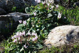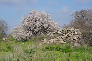 Another gorgeous day! We drove up to the Golan to Gamla Nature Reserve where Neil described what took place during the Second Temple Period and read the description by Josephus. The spring flowers are beginning to bloom with the lovely colors of the almond trees and cyclamen.
