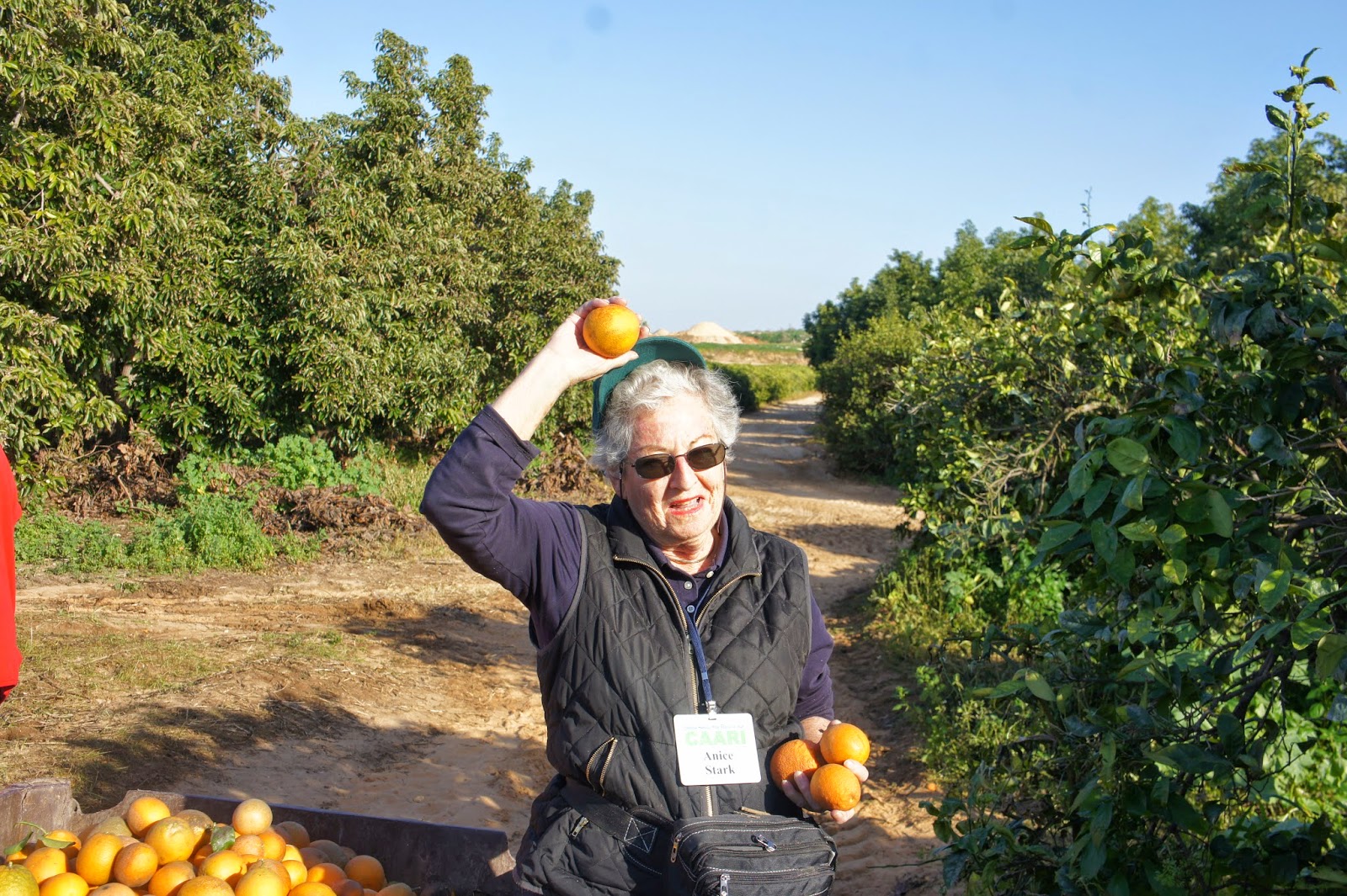 After lunch, we boarded the bus for our trip to Rehovot to pick fruit with Project Leket.  It was perfect weather for picking fruit – sunny with temperatures in the high 60’s.