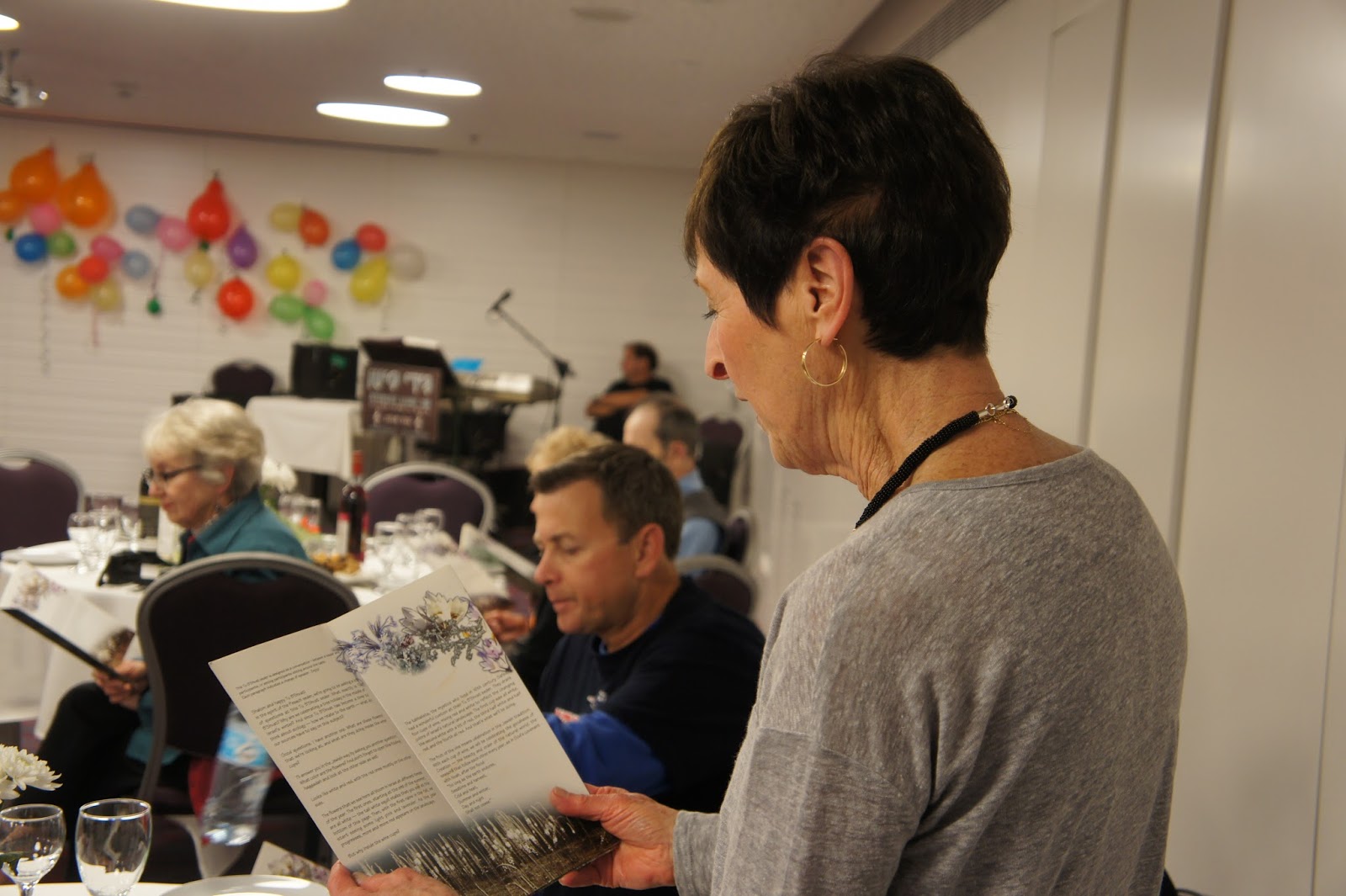 Esther Rose, active in the JNF of Sarasota, beautifully conducted the Seder. We read from our special Hagadah, as were said the blessing over the four cups of wine, symbolizing the 4 seasons, and blessing over the dried fruits and nuts. Esther was accompanied by Gidi Sivan, our resident musician, keyboard and percussion player. Gidi played many Tu Bshvat and Jewish