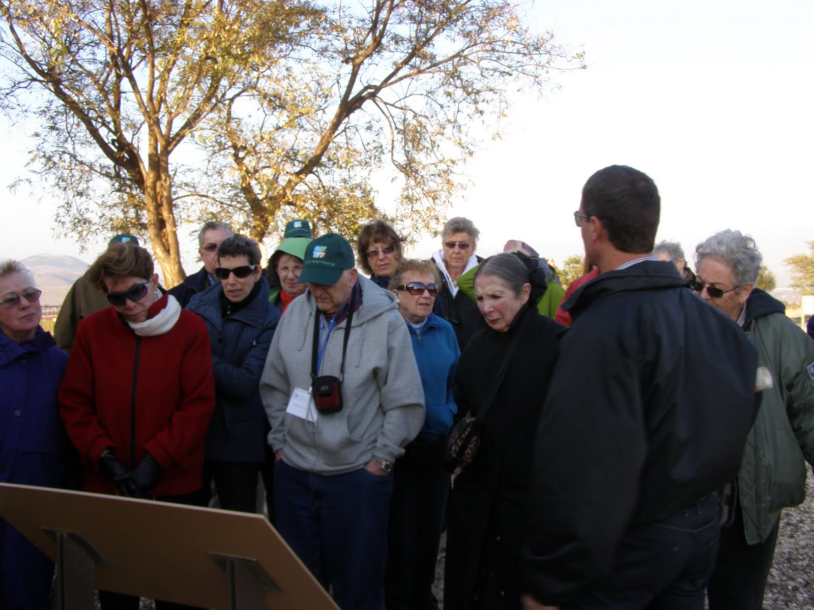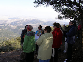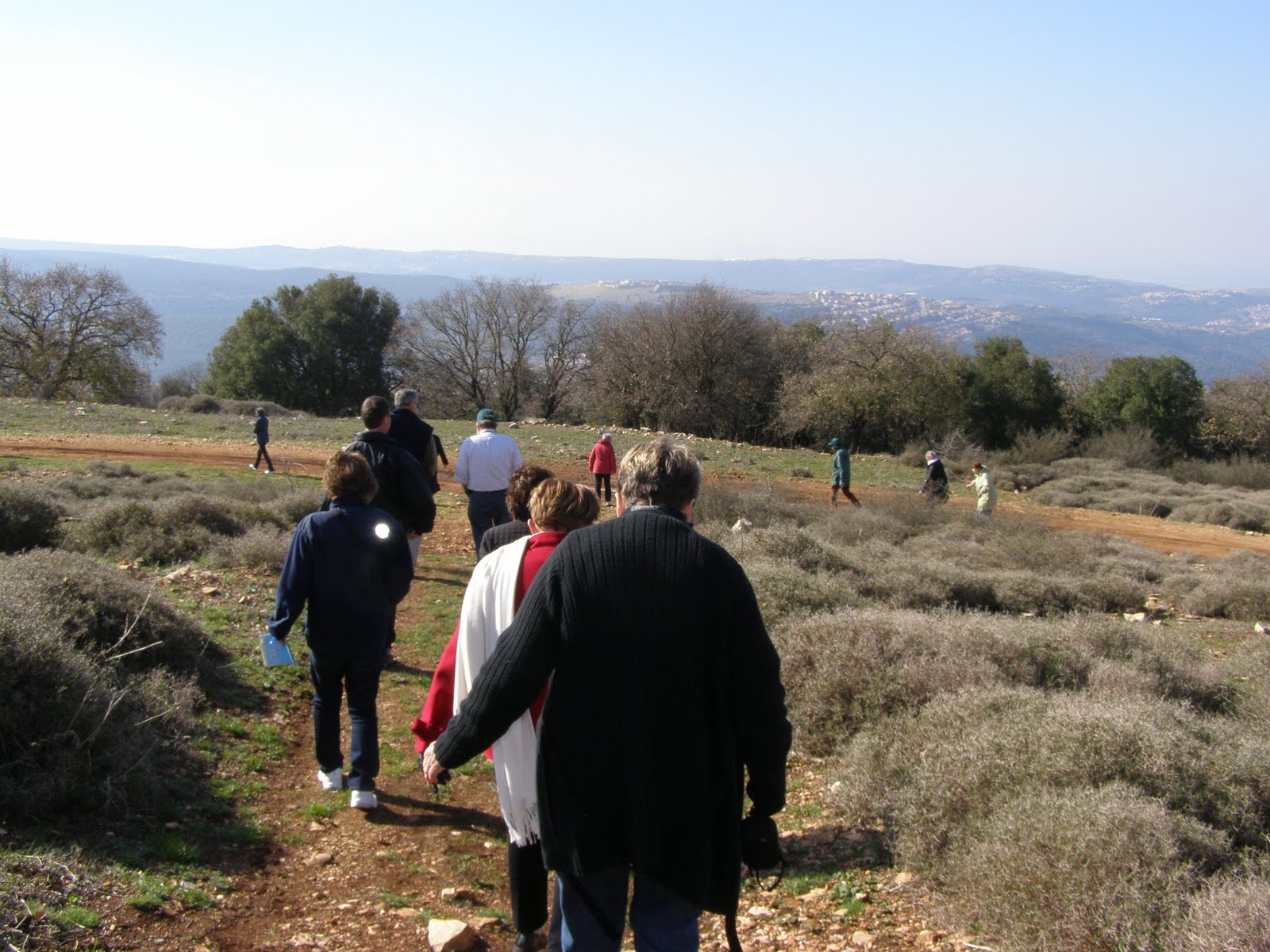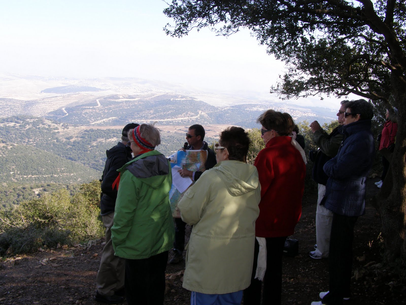 So, with Moti at the wheel, we headed north toward Akko, driving through a mixed residential and industrial part of the country. In spite of its size, Israel produces a large variety of products, like paint, concrete, has chemical processing and stone polishing using local limestone. The route continued north, through the small city of Naharyia to Mt. Adir along the northern border. We drove as far as we could into a small forest and from there we went by foot. From the view point there, we saw many small villages over the border in Lebanon. Guide Neil brought out his map of the country, explained about the history of the area, adding to what he told us on the drive.
