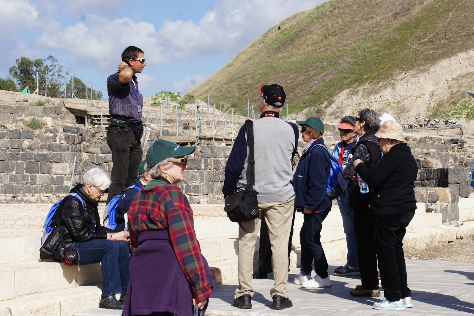 Beit She’an is one of the most ancient cities in Israel. The ruins at Beit She’an are in excellent condition and are extensive. Archaeological activity has been dormant in Beit She’an for the past decade. The city extended over an area of some 370 acres, and you can still see the remains of the wall that surrounded it. In addition, several impressive buildings have been uncovered, including a theater (still used for events and shows), a public bath-house (the largest found to date in Israel), public toilets, two magnificent colonnaded streets, a Roman temple, a decorative fountain building (nymphaeum), a large basilica marking the center of the city, and the reconstructed mosaic on which you can see Tyche, the Roman Goddess of Good Fortune, holding the Horn of Plenty. On to lunch and our last tour site for the day!
