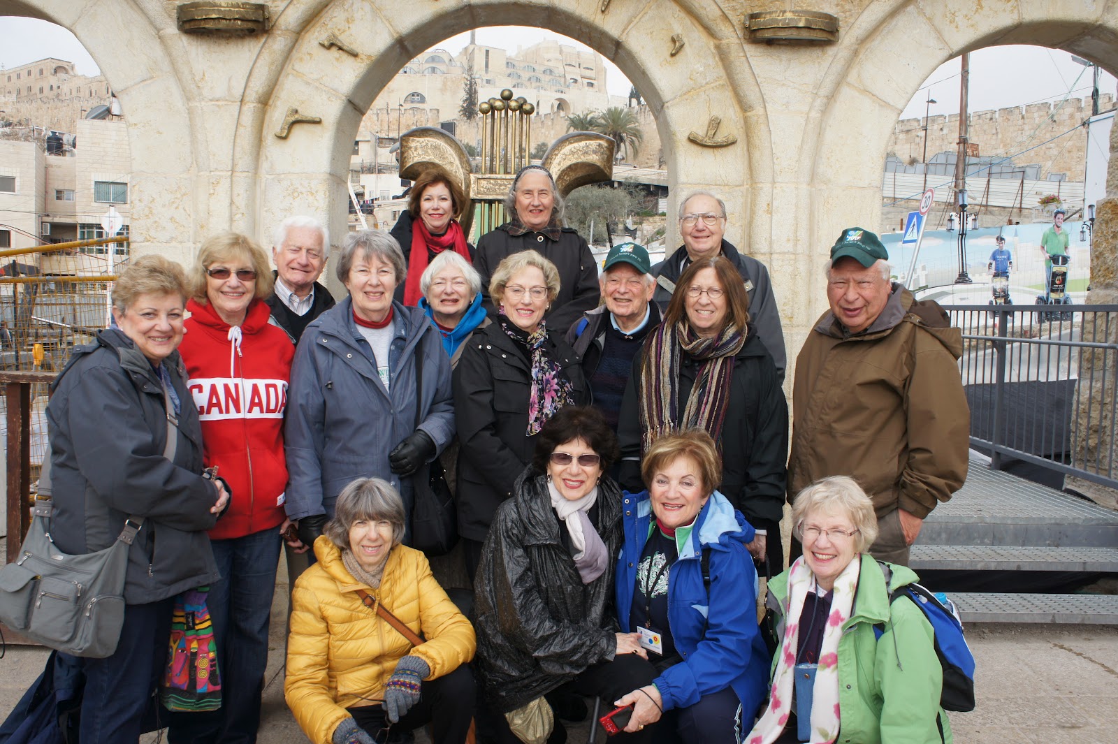 Today we spent our day in the Old City. We boarded the bus and drove along the City Walls to reach our destination – The Ancient City of David. As we drive along the Old City Walls – one thinks – how did they lift the huge stones to build the massive walls? Building, destruction and renovation from thousands of years ago – the time of King David, through the time of the Romans, Ottomans – all until today. Even now, the Municipality and other organizations are restoring the ancient wall. JNF Canada in Toronto is undertaking a project to restore the area around the Jaffa Gate. Not only view is amazing, but also the people walking about – children going to school, mother’s with their children in buggies going someplace, people going to work on the new light rail, men in black hats and coats coming and going to pray, Christian priests and nuns in brown and black robes and habits, Arabs men and women, in their traditional dress walking through the Damascus Gate to shop and also all the tour buses and tourists – everywhere!