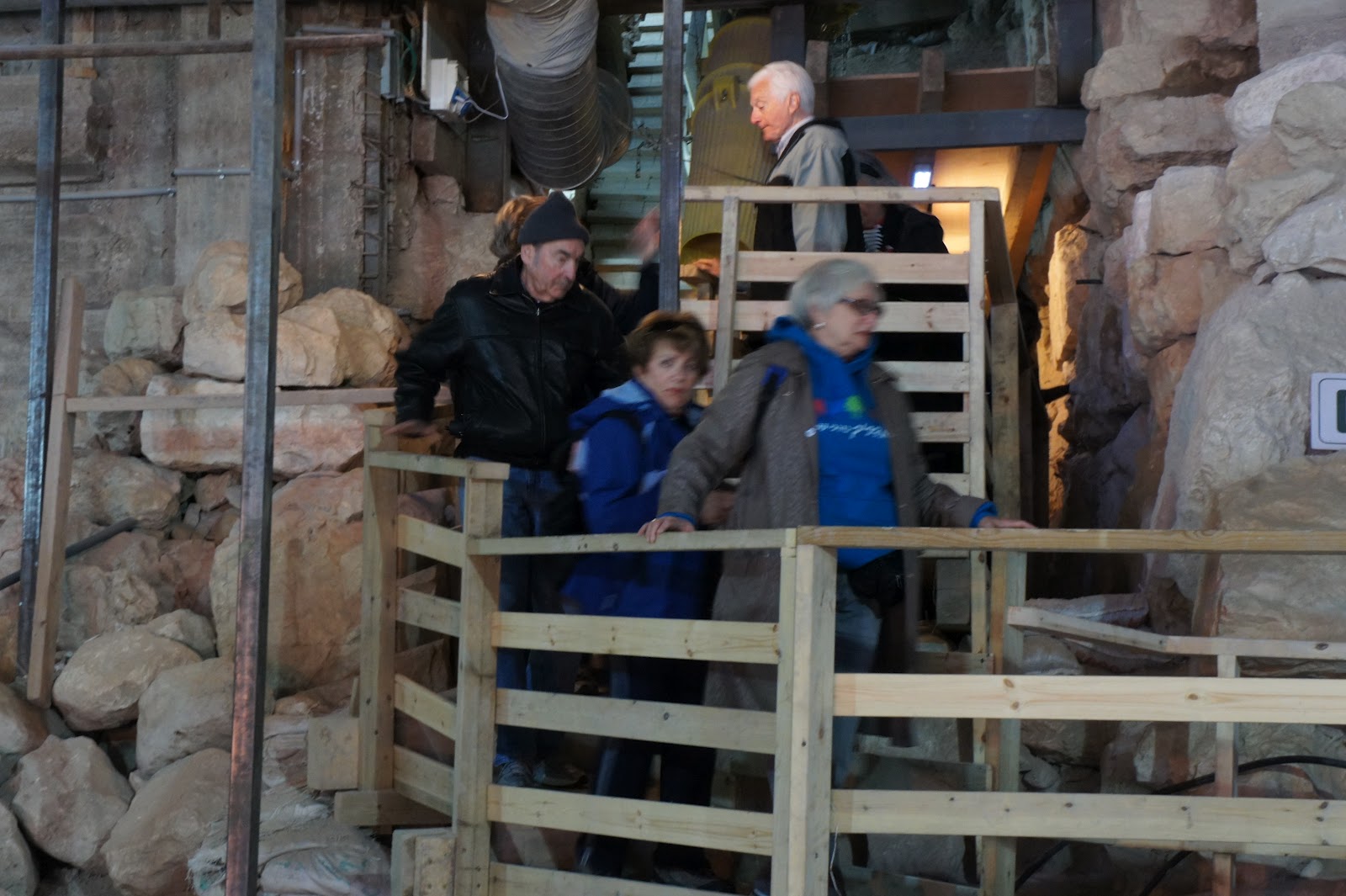 Next, we enter the theater to view the amazing 3D movie about the site – the 3D makes it really come alive. Then we begin our walking tourwith our City of David guides. Instead for Former’s Guide Book, the guidebook is the Bible! Each step, each view has some reference to the Bible. We walk up and down steps – view walls, rocks and learn about Jerusalem from the First Temple Period. Finally, we reach the bottom of the hillside and enter the ‘dry’ water tunnel. Truly a worthwhile experience – how did they do this in those days?