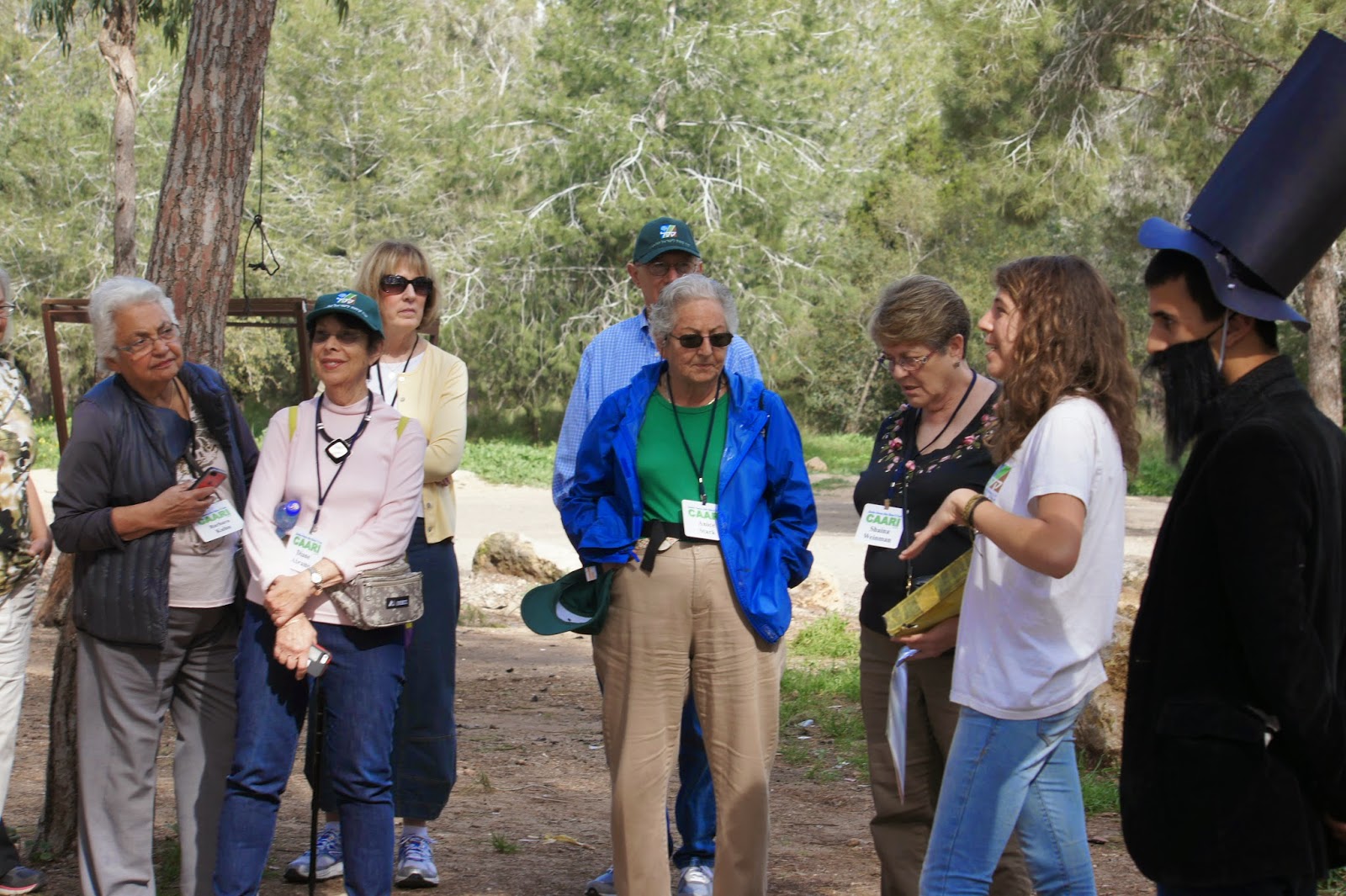 This is year was different than other years – why you ask? It is ‘shmita’ which mean that the land ‘rests’ on the 7th year and therefore, no tree planting. This year – KKL hosted families and CAARI to some forest activities, organized by a group of volunteers who are doing community service before their obligatory military service. Our guide, Guy, took us around to various ‘stations’ and the organized activities they designed for families. There was one that focused on Herzl and the Blue box – another where they discussed the meaning of smita. All very educational and informative – even CAARI learned more about the shmita! We enjoyed a short hike through Ben Shemen Forest and a picnic lunch with fresh fruits of Israel and tradtional burekas!