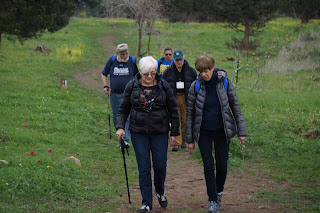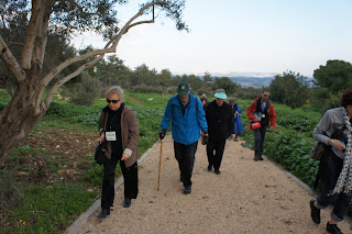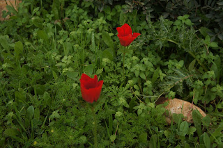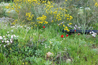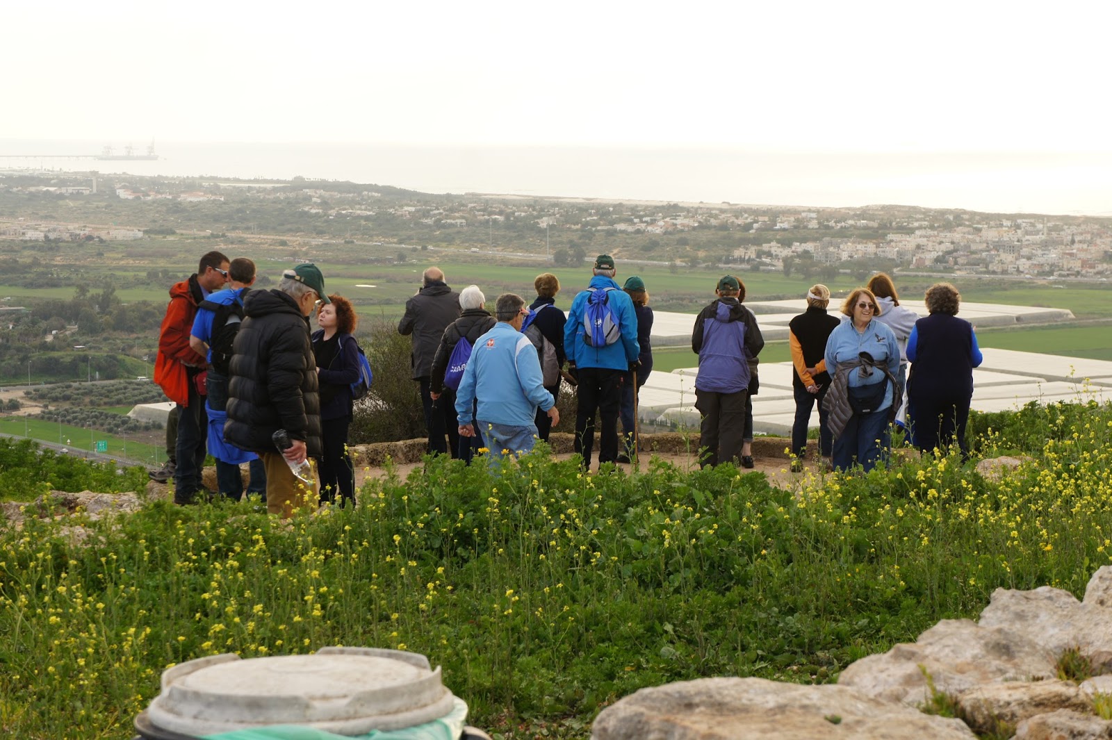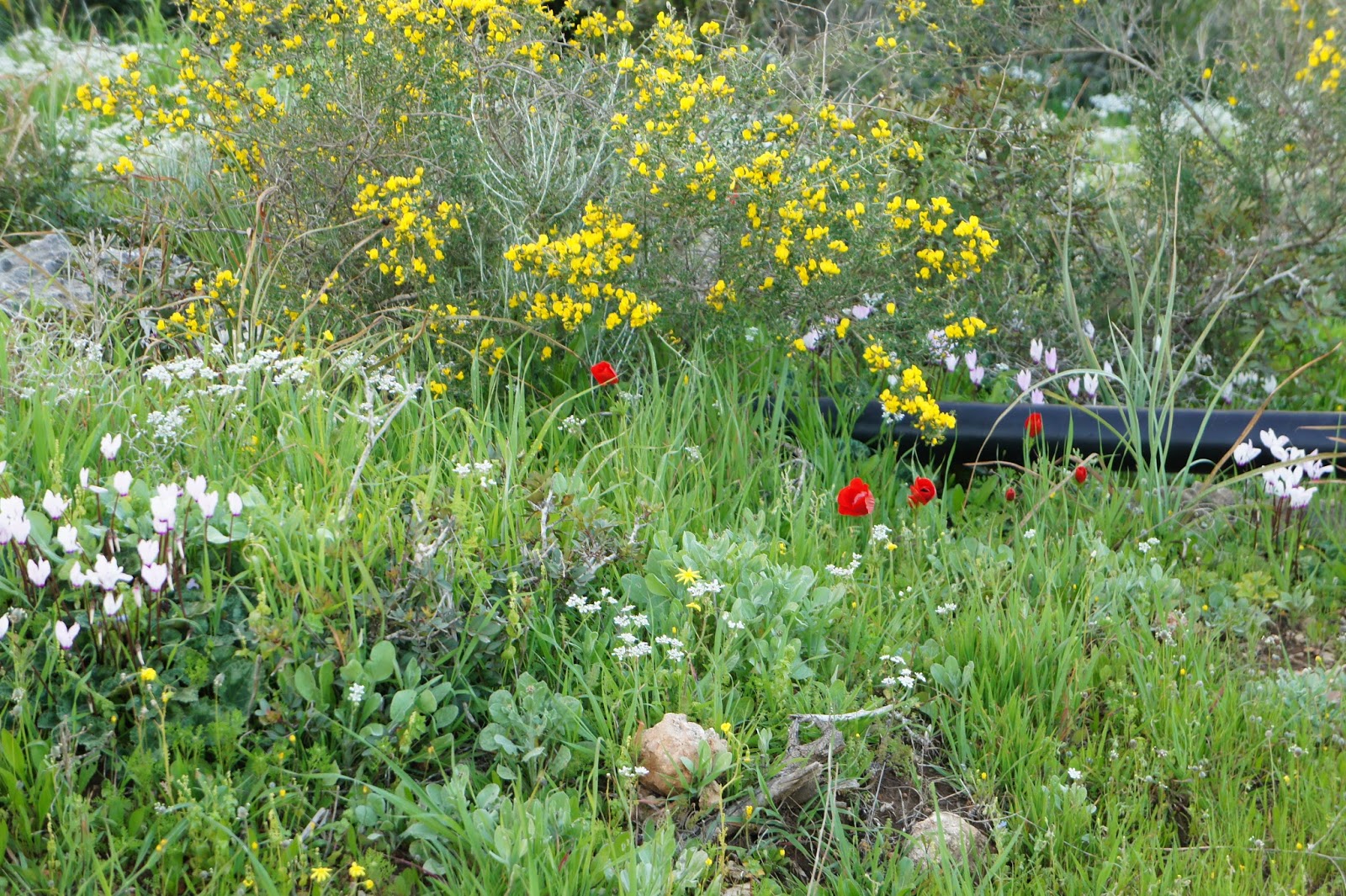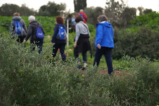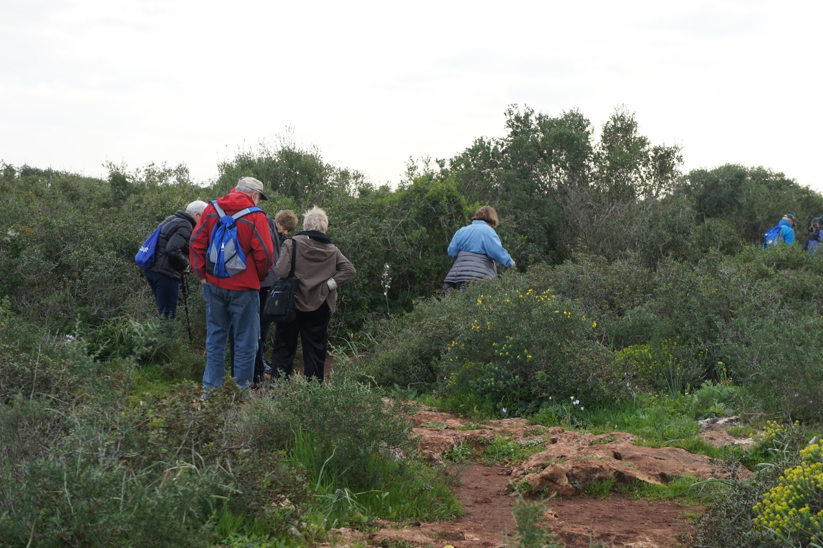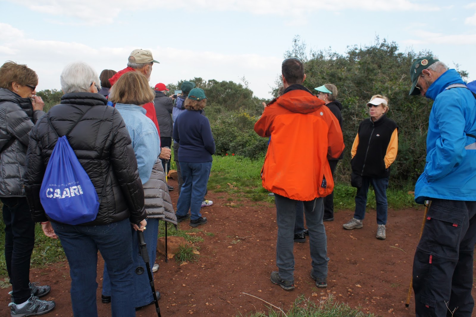 CAARI participants hiked the distance from the the Baron Rothchilds’ resting place to the Manzur El Akeb Arcaeological Site yesterday as the sun set. The hike was at the height of the winter wild flowers blossoming. white and pink Cycleman, red Anemones, wild Garlic, Hubesa (a green leafy local spinach and many other colorful wild flowers.