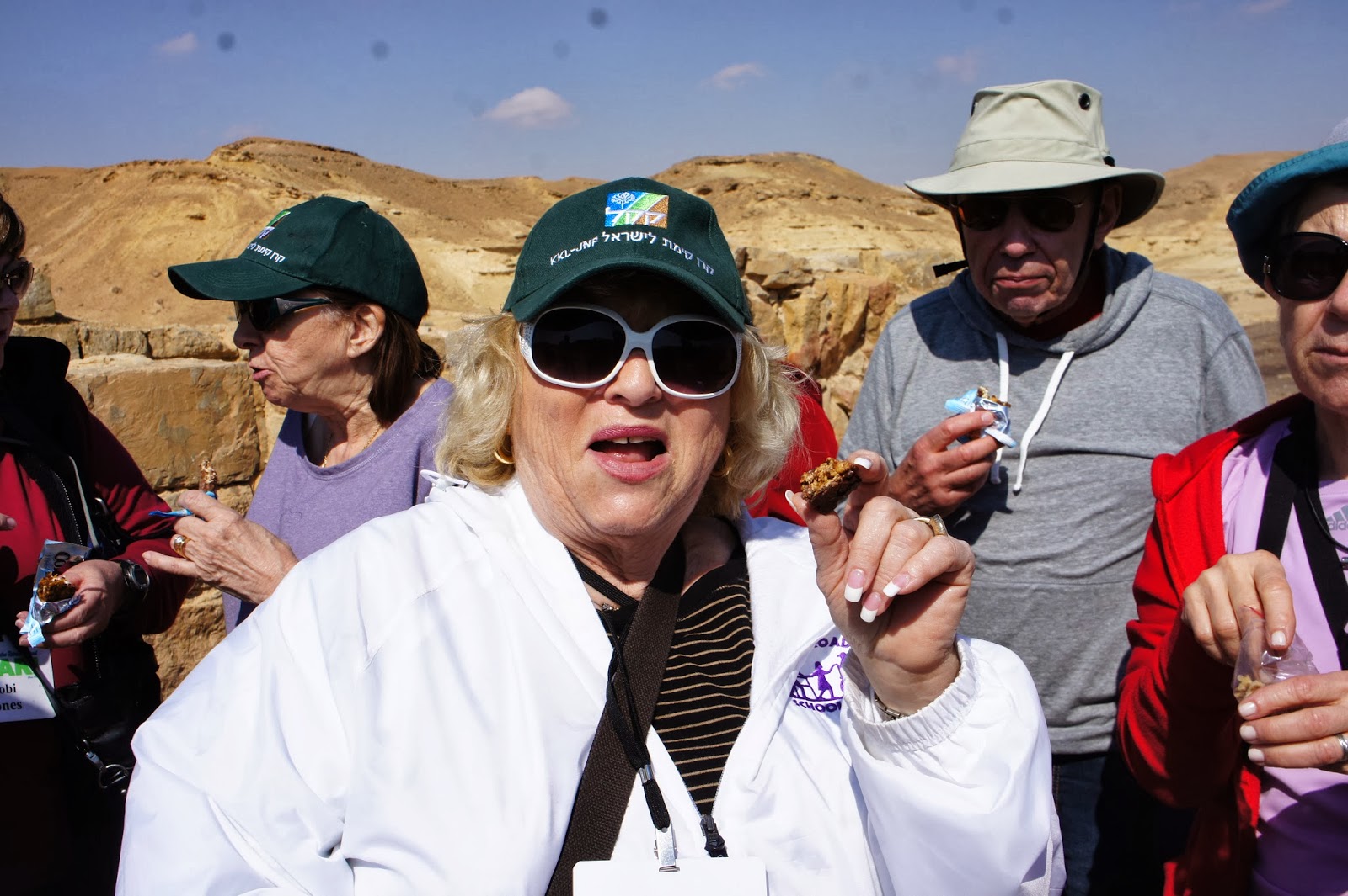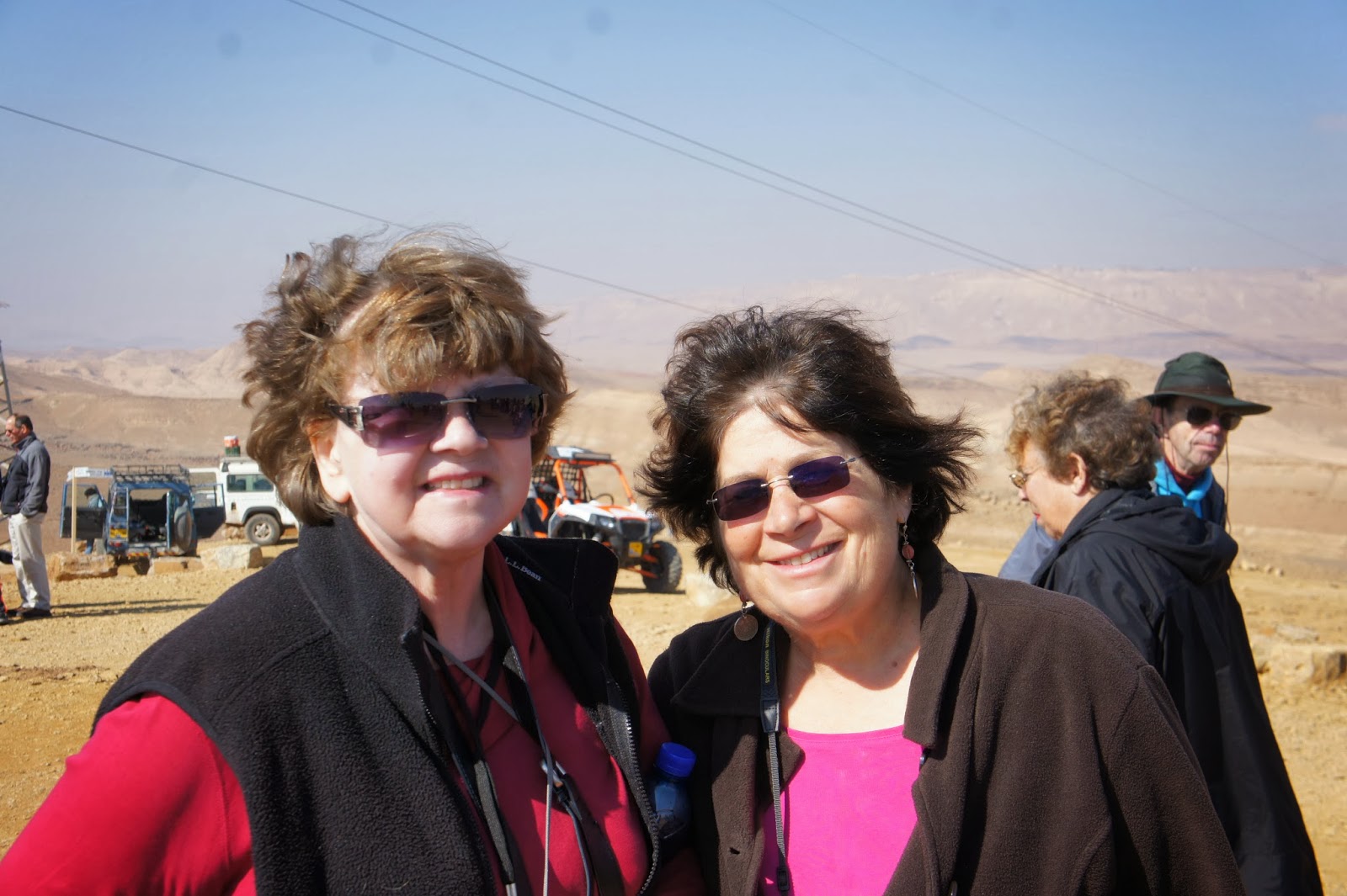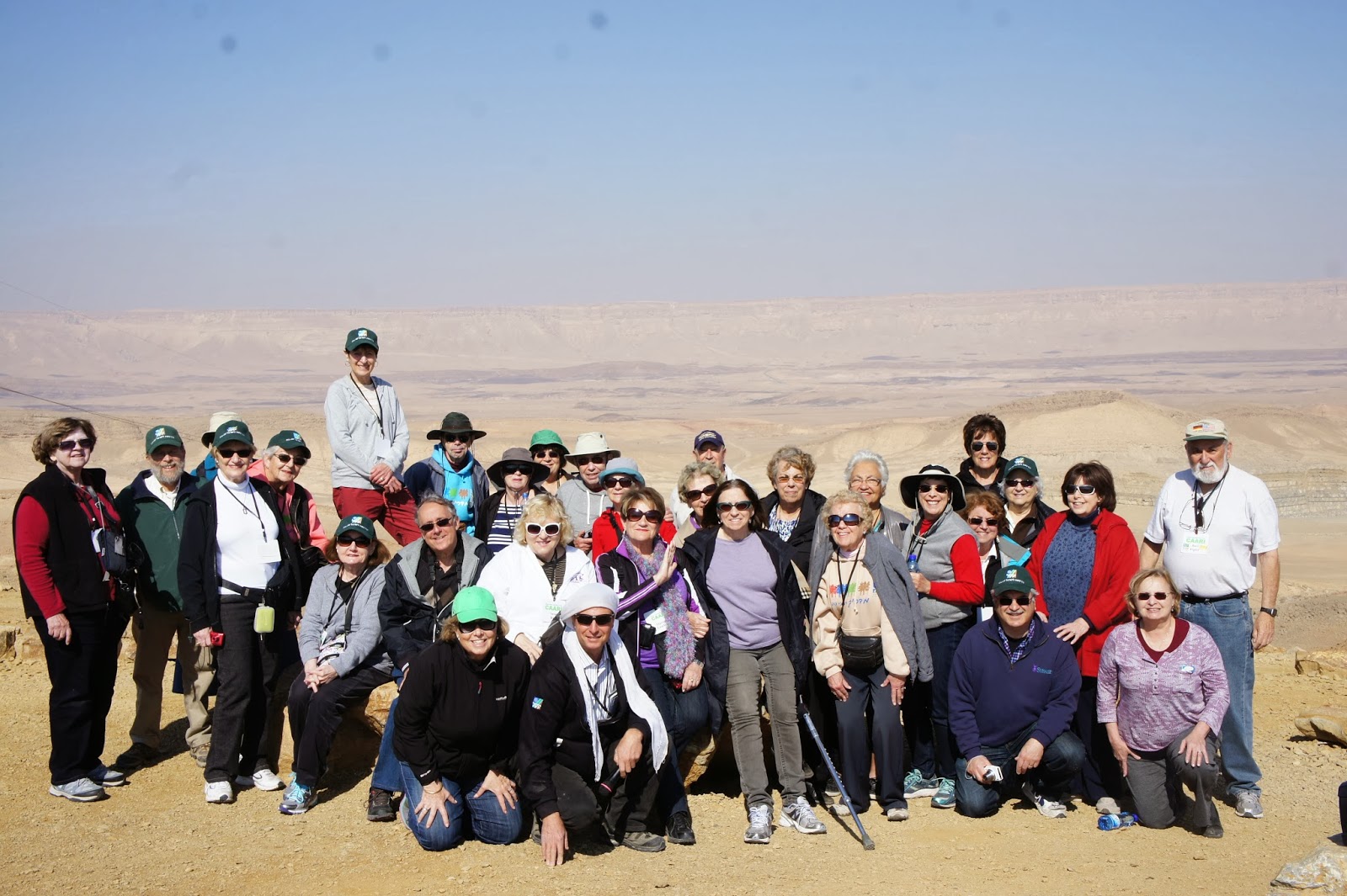 Fantastic day! Great weather – unbelievable vistas, interesting guide (Gilad) and fun with lots of laughs! So – you are asking – what did we do? We had a 4 hour jeep ride through the Ramon Makhtesh (some of you may think of this as a crater, but it is a makhtesh!) Our 5 jeeps, with drivers/guides,met us at the hotel and we climbed up and into these desert vehicles! Not always an easy task. They weren’t made for comfort especially over the bumpy, rocky, curvy paths – not roads – paths! But – we had lots of laughs! Gilad, the head guide, with an Israeli South African accent, gave us an excellent lesson on the formation of the makhtesh. As we drove through the makhtesh it was difficult to decide which view to look, as one view was more spectacular than the next. What was also amazing was the number of Israeli youth that were hiking through the makhtesh! Good for them!
