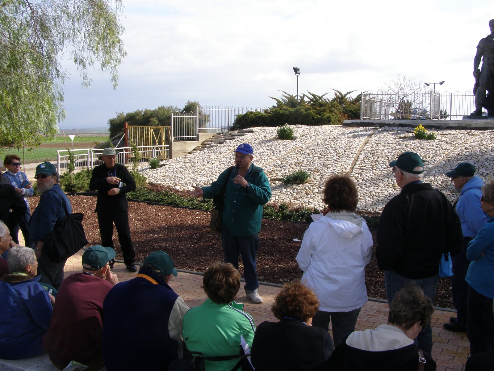 The CAARI beat goes on! Sadly, we said l’hitriot (goodbye) to some of our CAARI friends who joined us for the first three weeks. Happily we greeted 13 new participants who joined the group. Our first day together was a touring day in the Negev. We visited Kibbutz Negba and met Meir who described the early days of the kibbutz and their efforts to turn back the Egyptians in the War of Independence. The impressive sculpture by Natan Rappaport overlooks the kibbutz’s military cemetery. We also got to see some of the weapons that were used in the war. From there we traveled to Kibbutz Yad Mordechai which also fought against the Egyptian Army but tragically lost the fight after 6 days. We can only admire the soldiers who fought in these battles. After a little lunch we headed south, stopping the JNF Canadian reserviors at Nir Am where Neil described our view with Gaza in the distance. We continued driving south, stopping at a lookout and hillside to view Gaza and the Israeli communities along the border. This certainly gave us a new perspective of the area. Our final stop was the fabulous JNF-USA indoor playground in Sderot! Wow! We were there 2 years ago – it wasn’t quite finished and now – a wonderful, safe place for the children to play!
