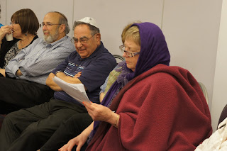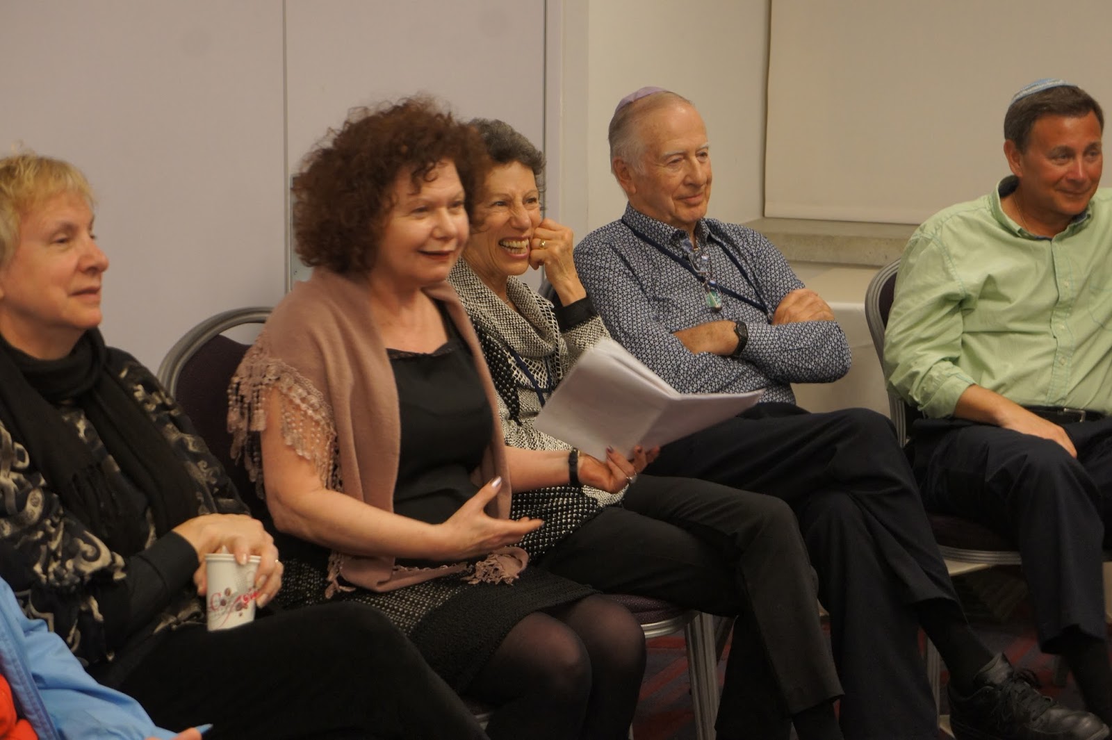 As you know, I do ANYTHING for a laugh, and the first part of our program was a group of stories about Chelm and the rebbe. I played the part of the rebbe. using my best Jewish rebbe accent. Our director had decided that it would be good to get into costume while sitting in our usual Shabbat Oneg circle……so I changed my reversible jacket from brown to black, put on a black skull cap, but then needed some help scotchtaping a black jewelry bag to my face as a beard…. I needed some assistance from another participant……which starting the laughing…..and then when she helped put on my payis (cotton stretched and curled and colored with black magic marker) that elicited more laughter…..I will ask our coordinator to send me a picture….which I can forward to you…..hoping it will put a smile on your faces. Needless to say, our little 15 minute presentation was a BIG hit……lots of laughs all around………..I was one happy camper,……Our program continued with some wonderful jokes by other CAARIites, and ended with a beautiful and touching poem written by a Canadian participant…..who is leaving after the Tel Aviv part (as am I…….so this was our last Oneg with the group) which was both humorous and touching……a very special night.