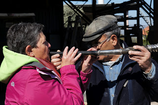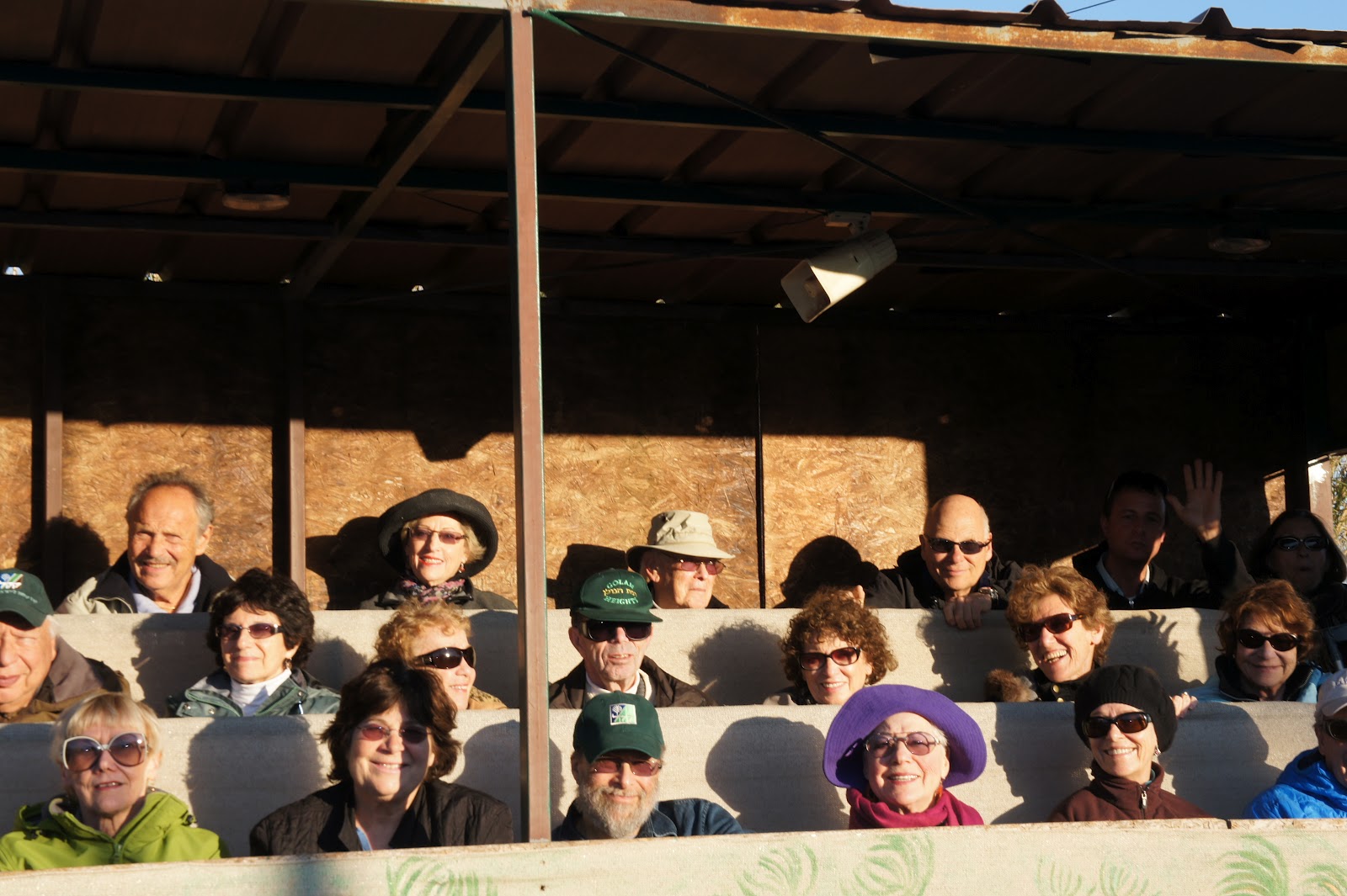 Greetings from Tiberias!What could be more lovely than the sun coming up over the Kinneret? Today we spent the day in the Golan. Our drive was so picturesque – driving up, up and up with views of the green lush valley, the blue Lake Kinneret, flowering trees and colorful wild flowers along the roadside. Our first stop was at a moshav with Shimon, the shofar maker. He told us how he became a shofar maker and the ‘fine’ art of shofar making beginning with how he gets the horn and the different types of shofars. Now, he could blow a shofar! Both Susan and Neil did a pretty good job, but they didn’t quite have Shimon’s technique. A few of us bought shofars and we will all remember this special visit. From there we visited a small Golan artist community. In the afternoon, we stopped at the ancient restored village of Korazin before the special tour of JNF’s Agmon Hula. This is the area where millions birds, including the cranes stop to ‘refuel’ on their way to Russia, Europe and Scandinavia for their summer stay! All of us boarded a wagon for a drive through the fields to get a close view of the cranes – not just a view, but you could also hear them! it was quite the site especially with the backdrop of the snow-capped Mt. Hermon. Dinner was at the charming Dborvin Farm followed by a overview of the “Northern Situation” the IDF Liaison. What a day!
