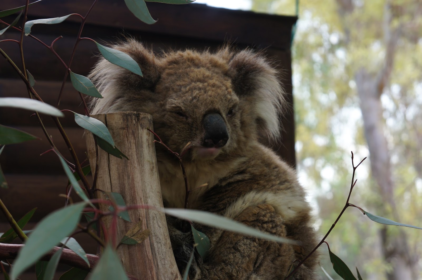 Our final stop in Gan Garoo was at a Koala area where we saw an 18-year old female Koala named Mindy, happily ensconced in a small Eucalyptus tree.