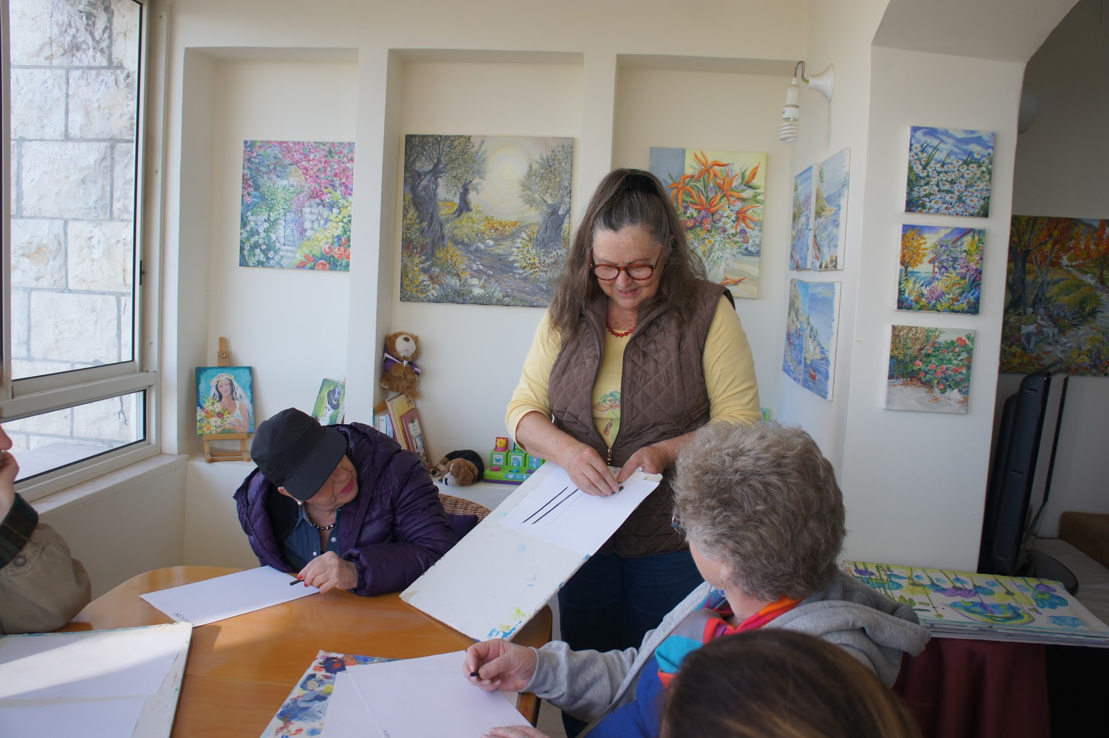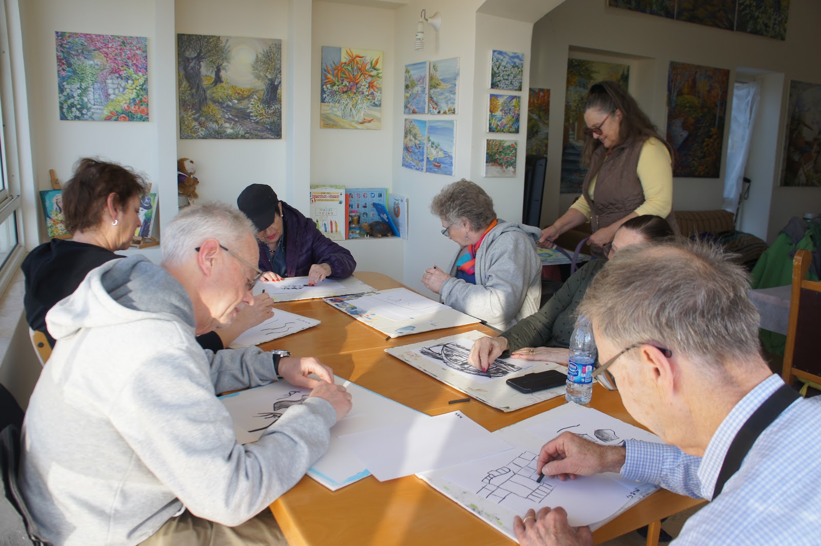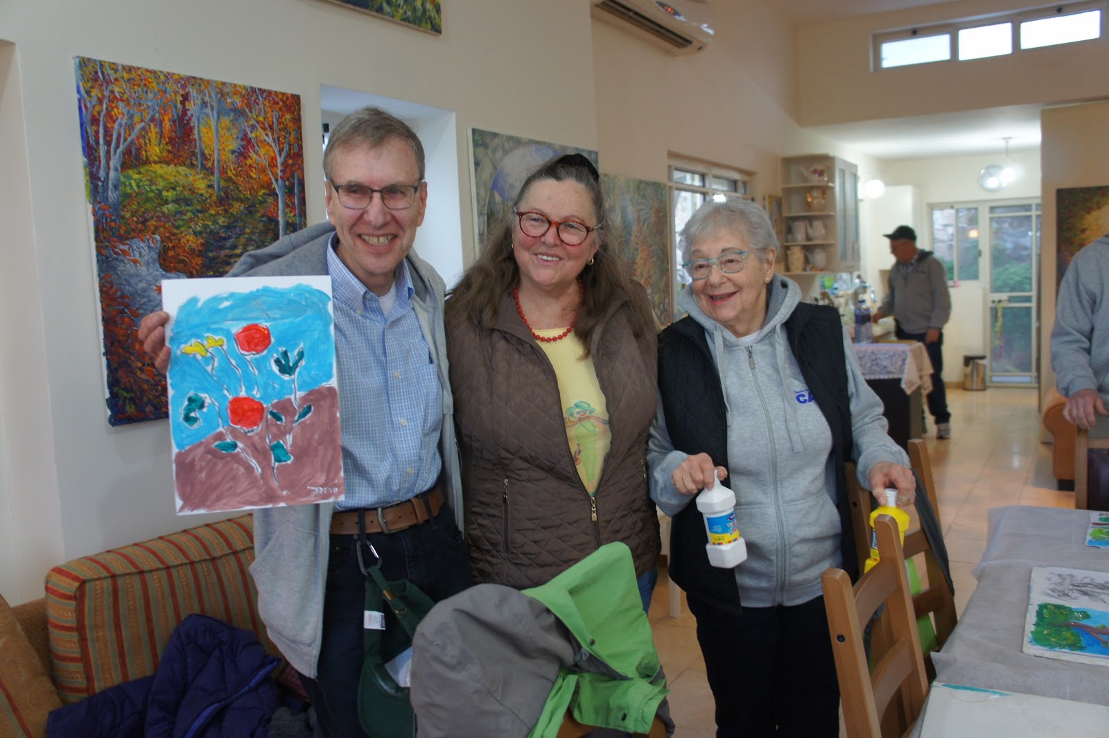 After community service and lunch, we set out of the artist village of Ein Hod. We were welcomed by Zivi, who is a painter. She was going to be our teacher. At first, a little difficult, but then we got into the art of painting and preparing our picture. Most of all – we had fun and lots of laughs. After…we enjoyed dinner out in one of our favorite restaurants in Caesarea – Aresto!