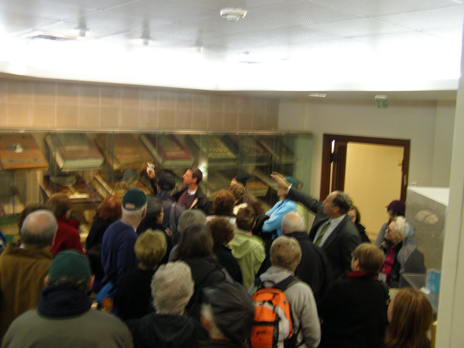 Today, Tuesday, was supposed to be our forest day…..but since it was scheduled to rain, our coordinators changed plans and we went to Jerusalem for most of the day….There we went to the headquarters of the JNF and it was interesting to note that they have books of contributors from 1901…..the beginning of JNF…..and they also had a display of the blue and white boxes…that we used to take around as kids…..asking for pennies and nickels to help buy trees in Palestine……before there was an Israel. It took many of us back to our childhoods….After that we had a very beautiful little ceremony where a grove of trees was presented to a Anice and Arnold Stark, a couple from Canada for all they do for JNF….Guess what…..I cried.
