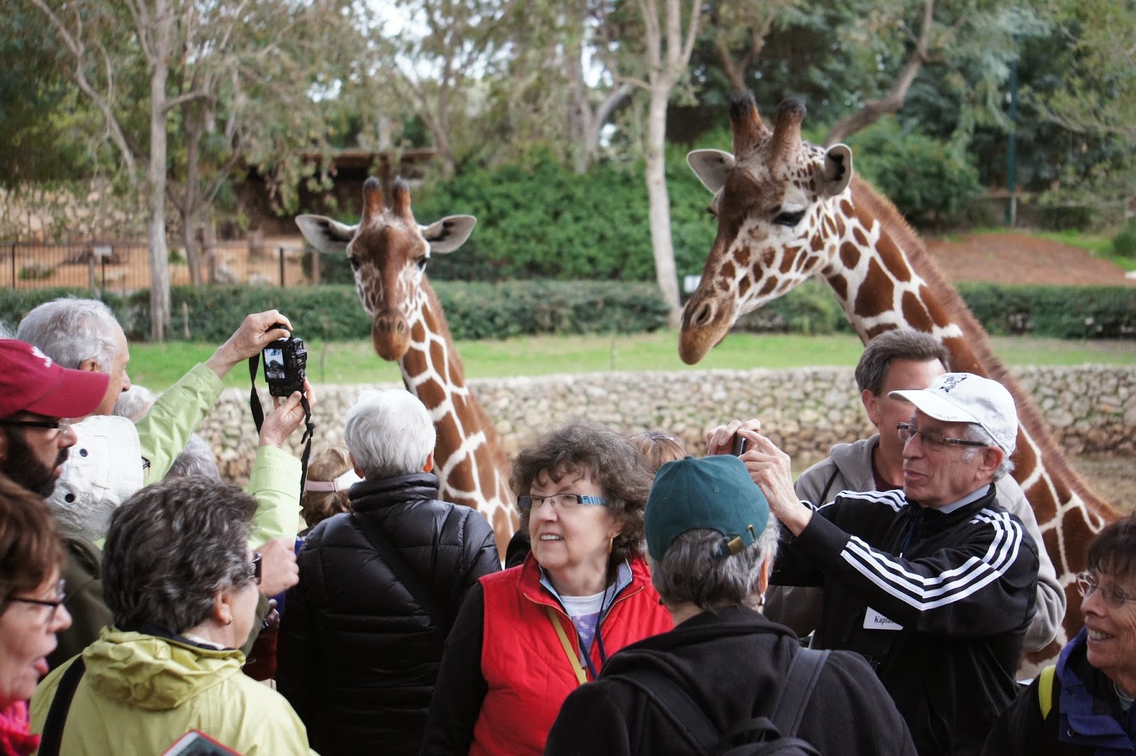 As we drover through the grounds the guide talked about the animals, where they came from – what they eat, etc . getting off a couple of times ……to see something up close or to feed to the giraffes….who licked hands with their LONG tongues”The Zoological Center Tel Aviv – Ramat Gan or “Safari” occupies 250 acres of nature in the heart of a densely populated urban area in Israel: The word ‘Safari” is colloquial Swahili for ‘journey’. and so CAARI embarked on a fascinating journey into the lives of animals in the African savannah.. Our guide described their natural habitat on the continent of Africa as the animals wander freely in large herds. We were able to watch the typical behavior of the animals: their feeding habits, the social behavior of the great herds, activities, and resting patterns. Our guide was amazing and we learned so much! We saw African and Asian elephants, zebras, bears, gazelles, gorillas, chimpanzees, and orangutans families, a herd of rhinoceroses and really enjoyed the ‘selfies’ while we hand fed the giraffes eucalyptus leaves! How special is that!
